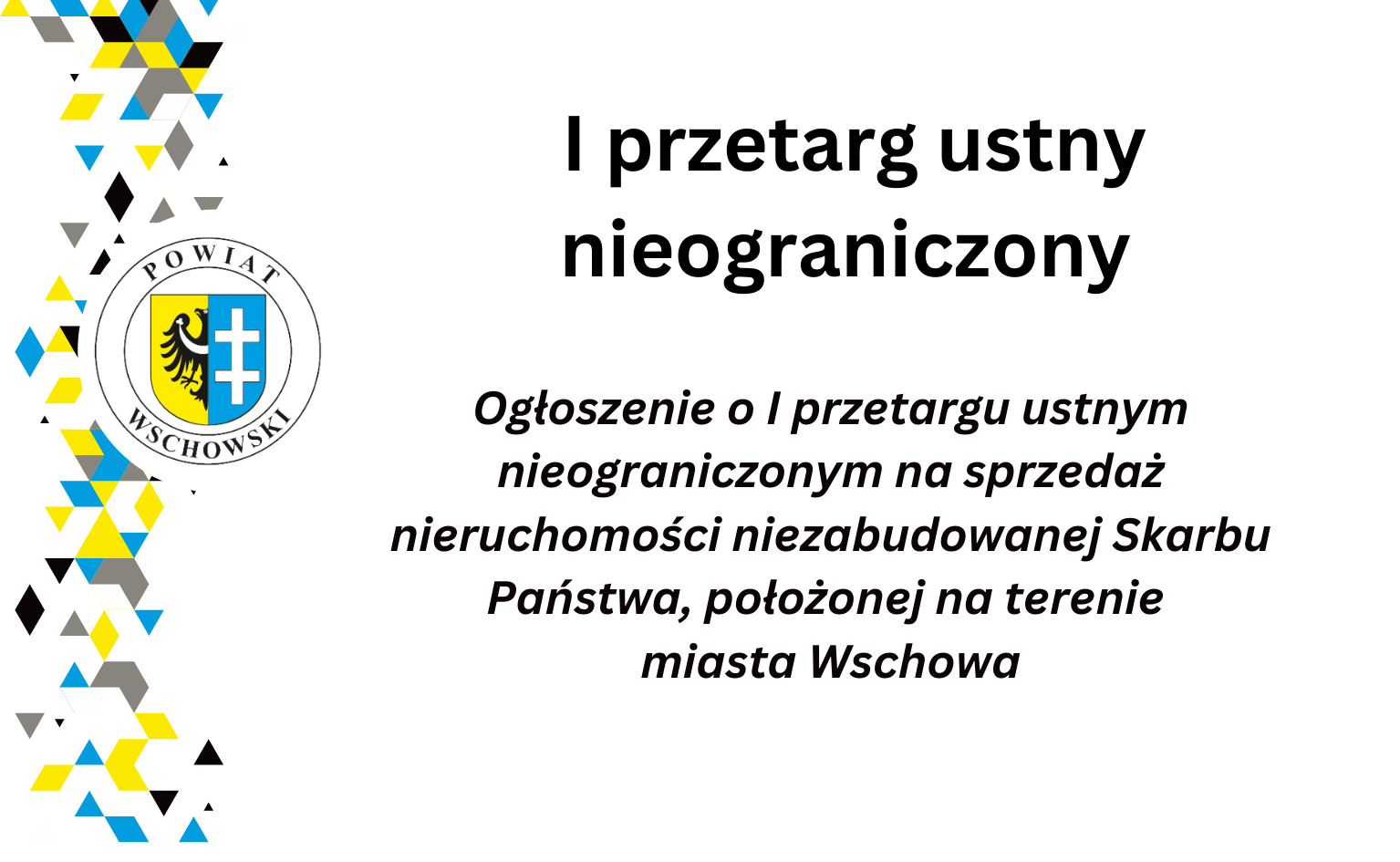 Starostwo Powiatowe we Wschowie informuje o ogłoszeniu I przetargu ustnego nieograniczonego na sprzedaż nieruchomości niezabudowanej Skarbu Państwa, położonej na terenie miasta Wschowa. Przedmiot przetargu Przedmiotem ...