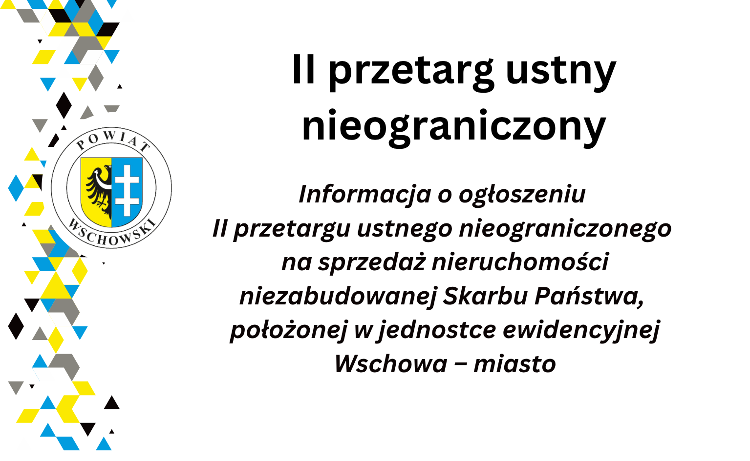 Informacja o ogłoszeniu II przetargu ustnego nieograniczonego na sprzedaż nieruchomości niezabudowanej Skarbu Państwa, położonej w jednostce ewidencyjnej Wschowa – miasto Lokalizacja: Wschowa, działka nr 1849Powierzchnia: ...