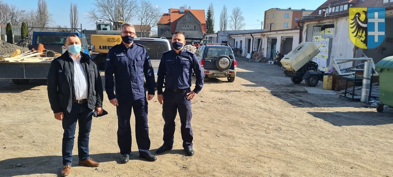 Starosta Wschowski Andrzej Bielawski, Wicestarosta Waldemar Starosta wraz z Zastępcą Komendanta Wojewódzkiego Policji insp. Tomaszem Kłosowskim i p.o. Komendanta Powiatowego Policji nad. Tomaszem Szudą wzięli udział w radzie budowy związanej z trwającą przebudową budynków i zagospodarowaniem terenu przy Komendzie Powiatowej Policji we Wschowie.