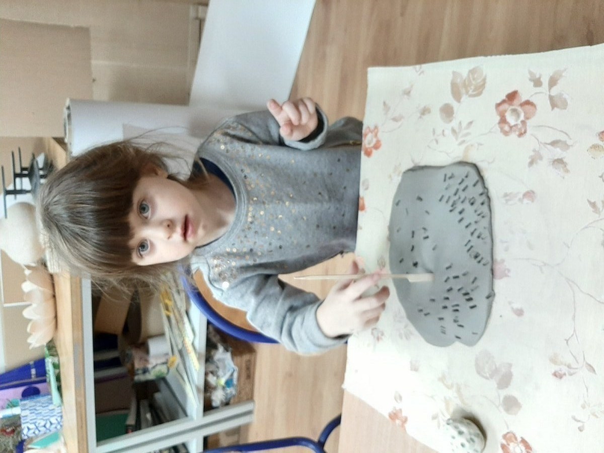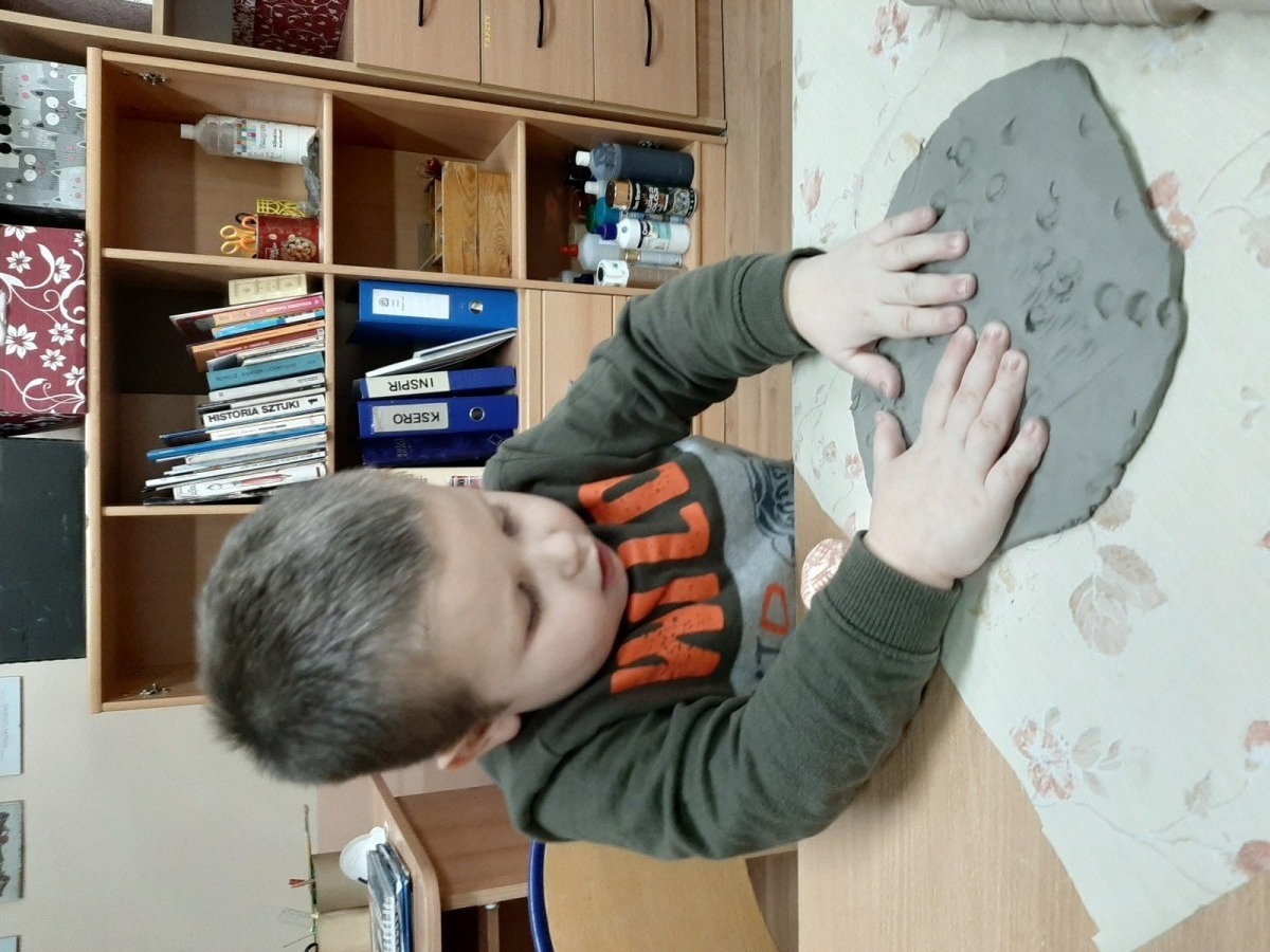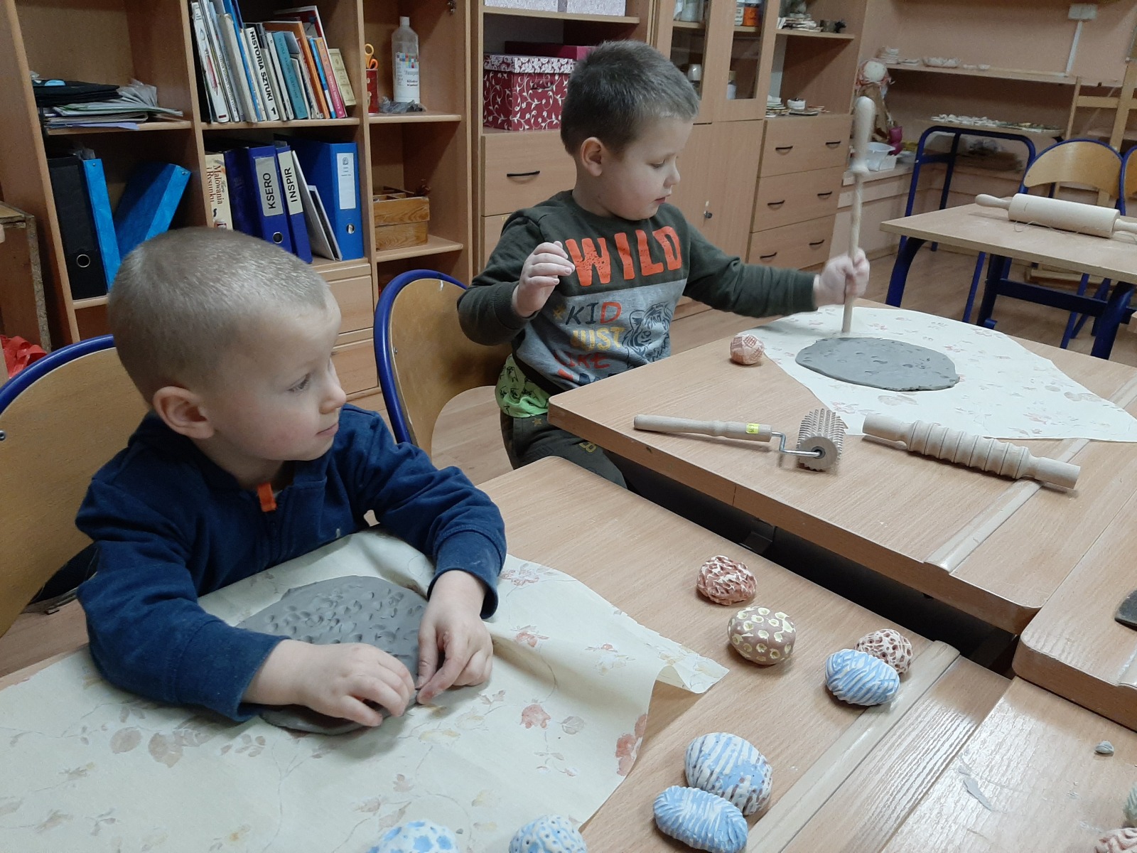 Na zajęciach początkowych dzieci zapoznały się z topografią pracowni, gdyż szczególnie istotne było, by były samodzielne na miarę swoich możliwości, poznały podstawowe narzędzia i potrafiły zorganizować swoje stanowisko pracy. Zajęcia są każdorazowo dostosowane do możliwości każdego z uczestników. Zdarza się, że dziecko chce realizować własny projekt, wówczas wspólnie ustalamy sposób wykonania oraz kolejność działań. Modelowanie w glinie w sposób samoistny usprawnia koncentrację uwagi, zmniejsza napięcie mięśniowe i co najważniejsze znacząco podnosi poczucie własnej wartości. Z przyjemnością obserwuję, jak podczas kolejnych zajęć przedszkolaki działają w oparciu o doświadczenia z poprzednich zajęć, potrafią pomagać sobie wzajemnie wzbogacając i ćwicząc mowę czynną i bierną. Ceramiczne drobiazgi stworzone siłą dziecięcych paluszków, wypalone i poszkliwione wywołują uśmiech, sprawiając że dzieci są dumne z tego co wytworzyły i cały czas mają ochotę na więcej.