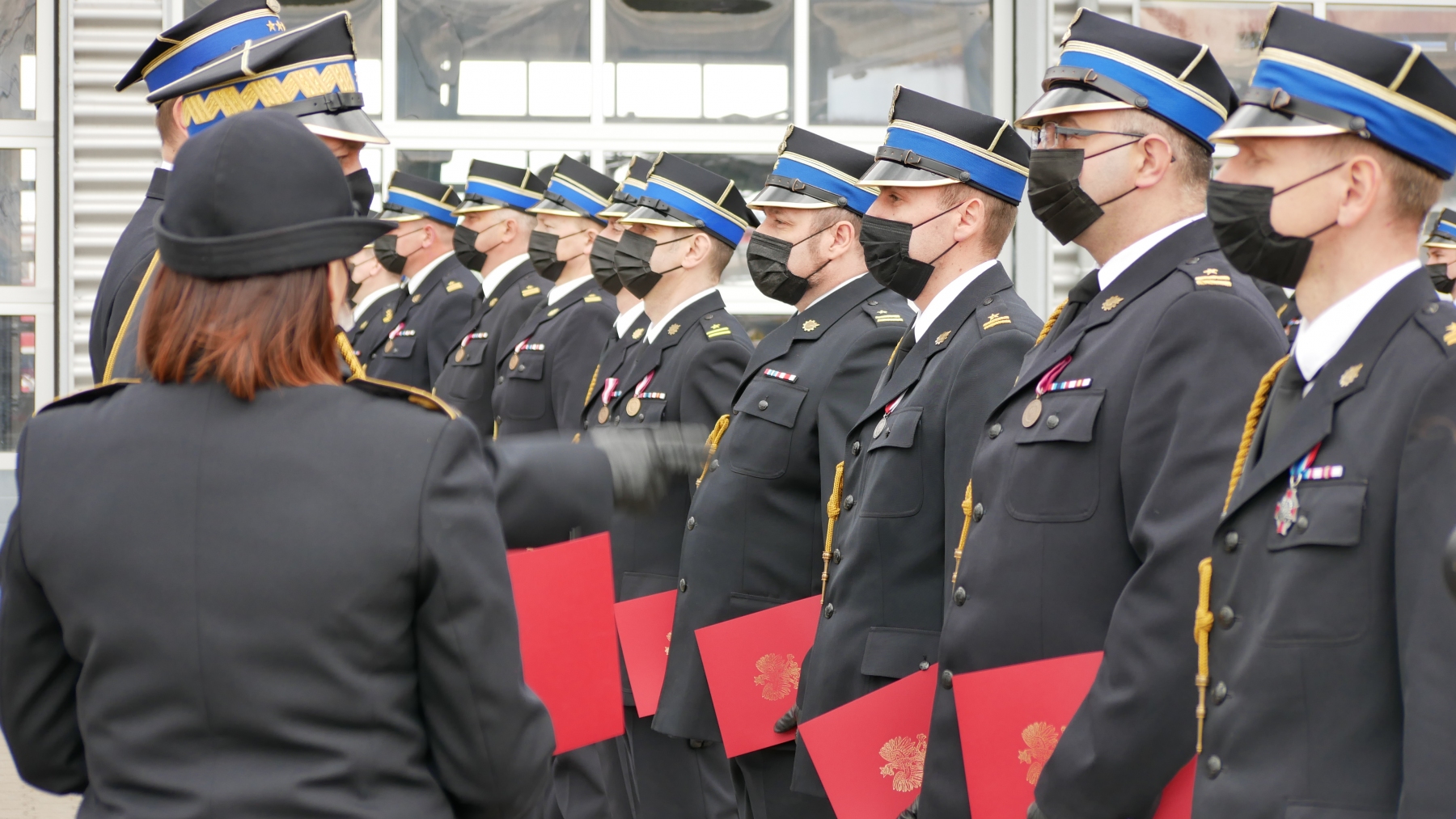 Wojewoda Władysław Dajczak wraz z zastępcą Komendanta Głównego Państwowej Straży Pożarnej nadbryg. Arkadiuszem Przybyłą i Komendantem Wojewódzkim Państwowej Straży Pożarnej st. bryg. Patrykiem Maruszakiem wręczyli odznaczenia, wyróżnienia i awanse.