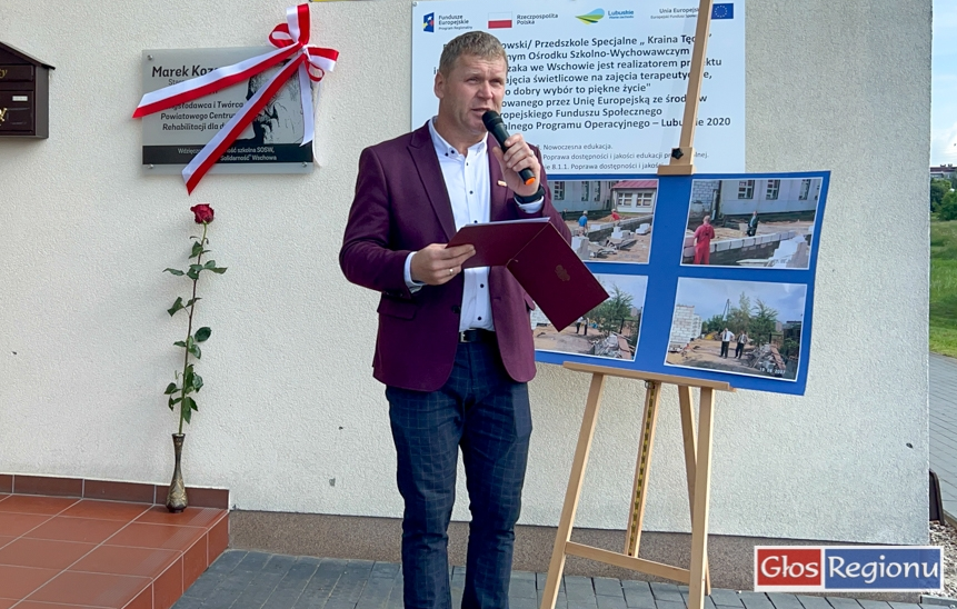 W ramach obchodów Jubileuszu 55-lecia Specjalnego Ośrodka Szkolno-Wychowawczego im. Janusza Korczaka we Wschowie, odsłonięto tablicę pamiątkową poświęconą śp. Markowi Kozaczkowi Staroście Wschowskiemu w latach 2002-2011, który był pomysłodawcę i twórcę Powiatowego Centrum Rehabilitacji dla dzieci.