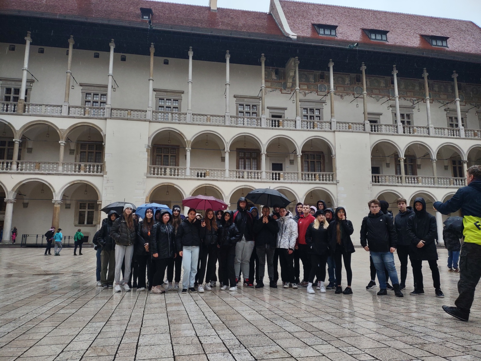 Po kilkugodzinnej podróży autokarem, pierwszym celem obu wycieczek był Kraków i Wawel. Zwiedzanie Skały nad Wisłą czyli Wzgórza Wawelskiego związane było ściśle z poznaniem historii Zamku Królewskiego z dziedzińcem arkadowym, zobaczeniem Katedry Królewskiej, Grobów, Krypt Królewskich i Zasłużonych Polaków, Krypty pary Prezydenckiej, pozostałości murów obronnych, spotkaniu ze Smokiem Wawelskim i poznaniu o nim legendy.