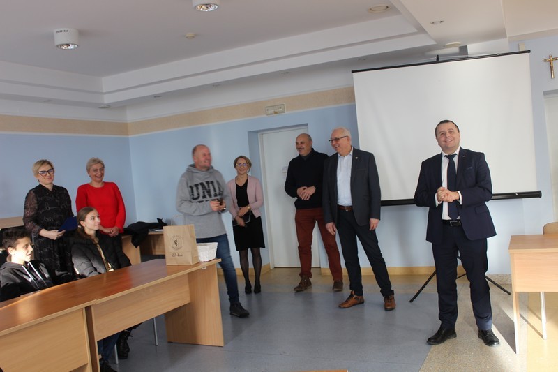 Uczniów, w sali konferencyjnej, przywitali Starosta Wschowski Andrzej Bielawski i Wicestarosta Wschowski Waldemar Starosta. Wicestarosta przedstawił uczniom strukturę samorządu terytorialnego i krótko omówił zasady funkcjonowania poszczególnych wydziałów, natomiast naczelnicy zaprezentowali podstawowe działania komórek organizacyjnych.