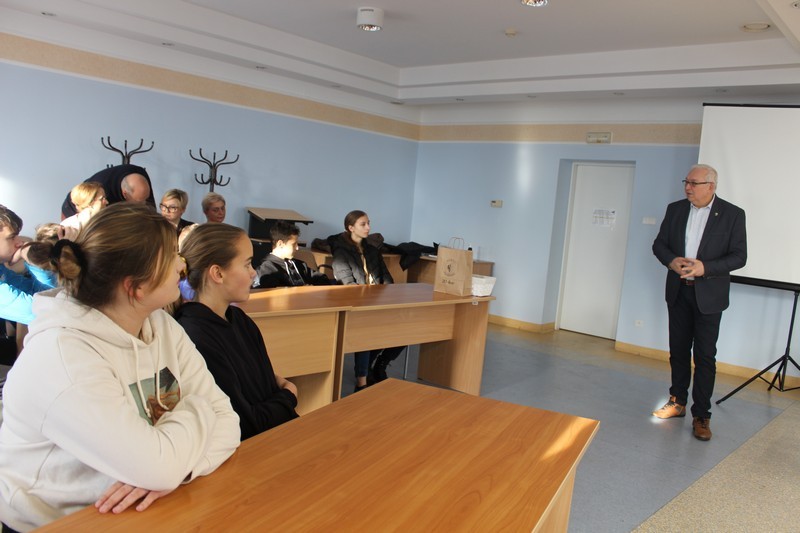 W dniu 14 grudnia 2022 roku w ramach zajęć z wiedzy o społeczeństwie do Starostwa Powiatowego we Wschowie zawitali uczniowie klasy VIII Szkoły Podstawowej Nr 2 we Wschowie wraz z nauczycielem Panem Jackiem Szaferskim.