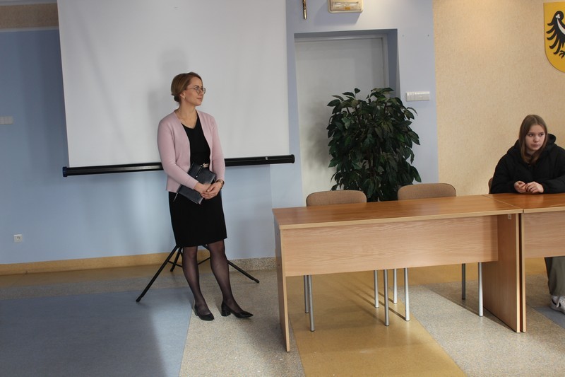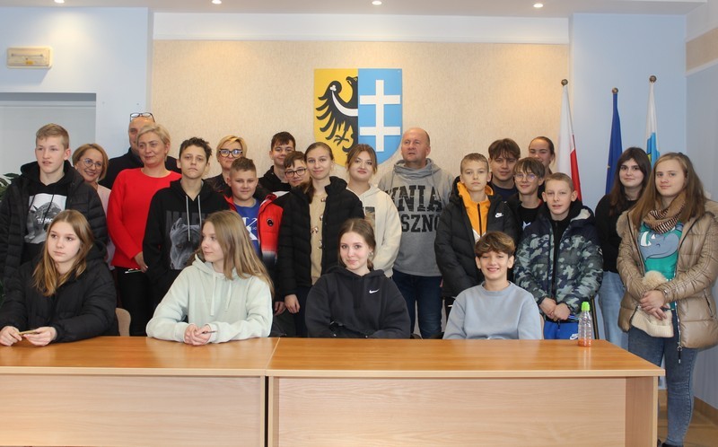 Celem wizyty było zapoznanie uczniów z zasadami funkcjonowania urzędu oraz rolą i zadaniami jakie wykonuje samorząd powiatowy.