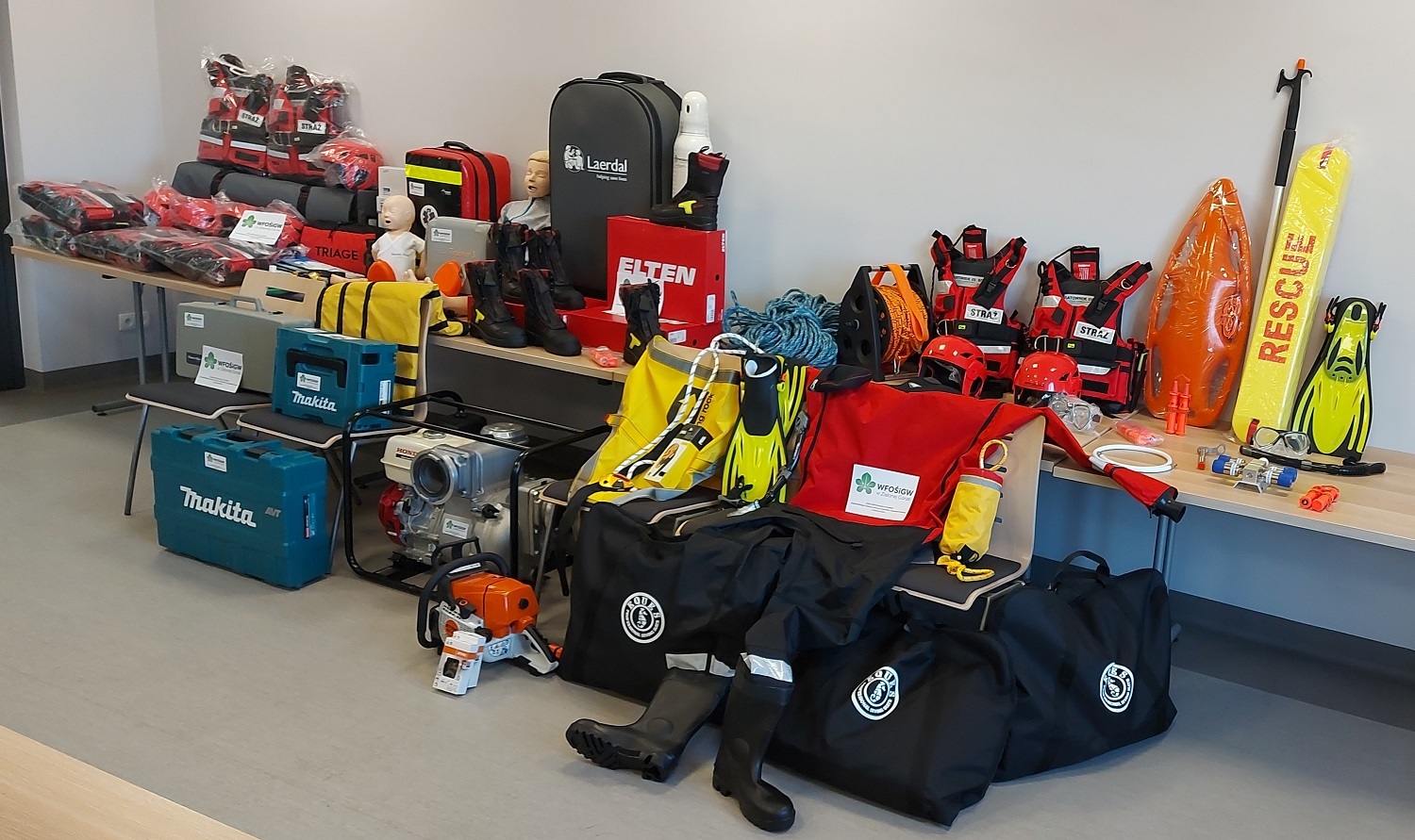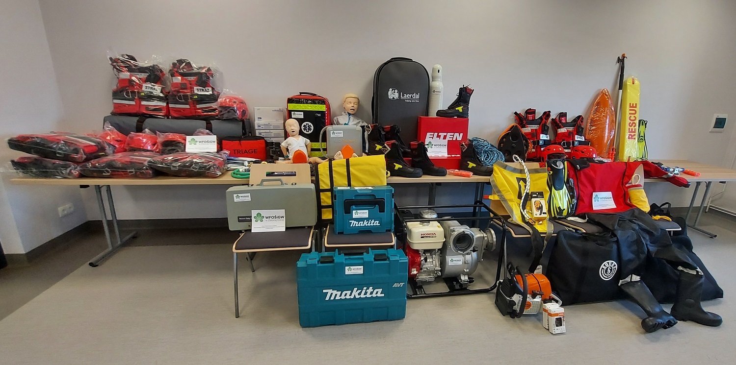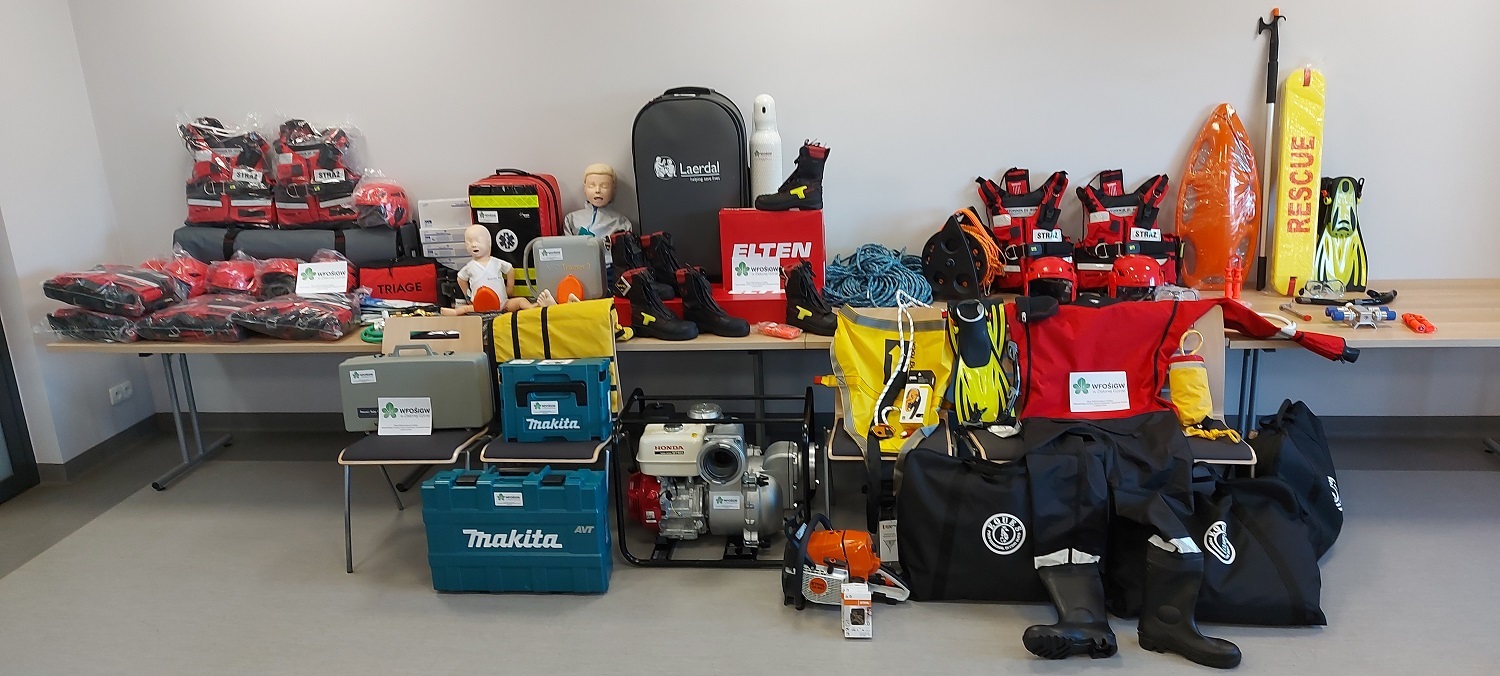 z zakresu ratownictwa wodnego, wysokościowego, medycznego oraz wyposażenia dla Komendy Powiatowej Państwowej Straży Pożarnej we Wschowie. Zakupione obuwie specjalne o wysokim standardzie wpłynie na bezpieczeństwo i komfort pracy podczas działań ratowniczo-gaśniczych, ćwiczeń i szkoleń. Zakupiony sprzęt i wyposażenie stanowi doposażenie uwzględniając normatywy, wymagania sprzętowe wynikające ze standardów wyposażenia z poszczególnych dziedzin ratownictwa w krajowym systemie ratowniczo-gaśniczym.