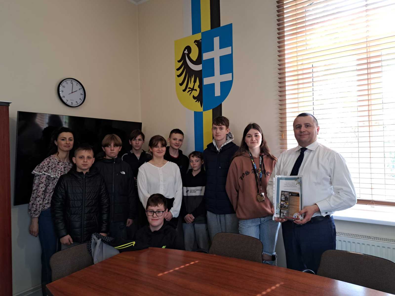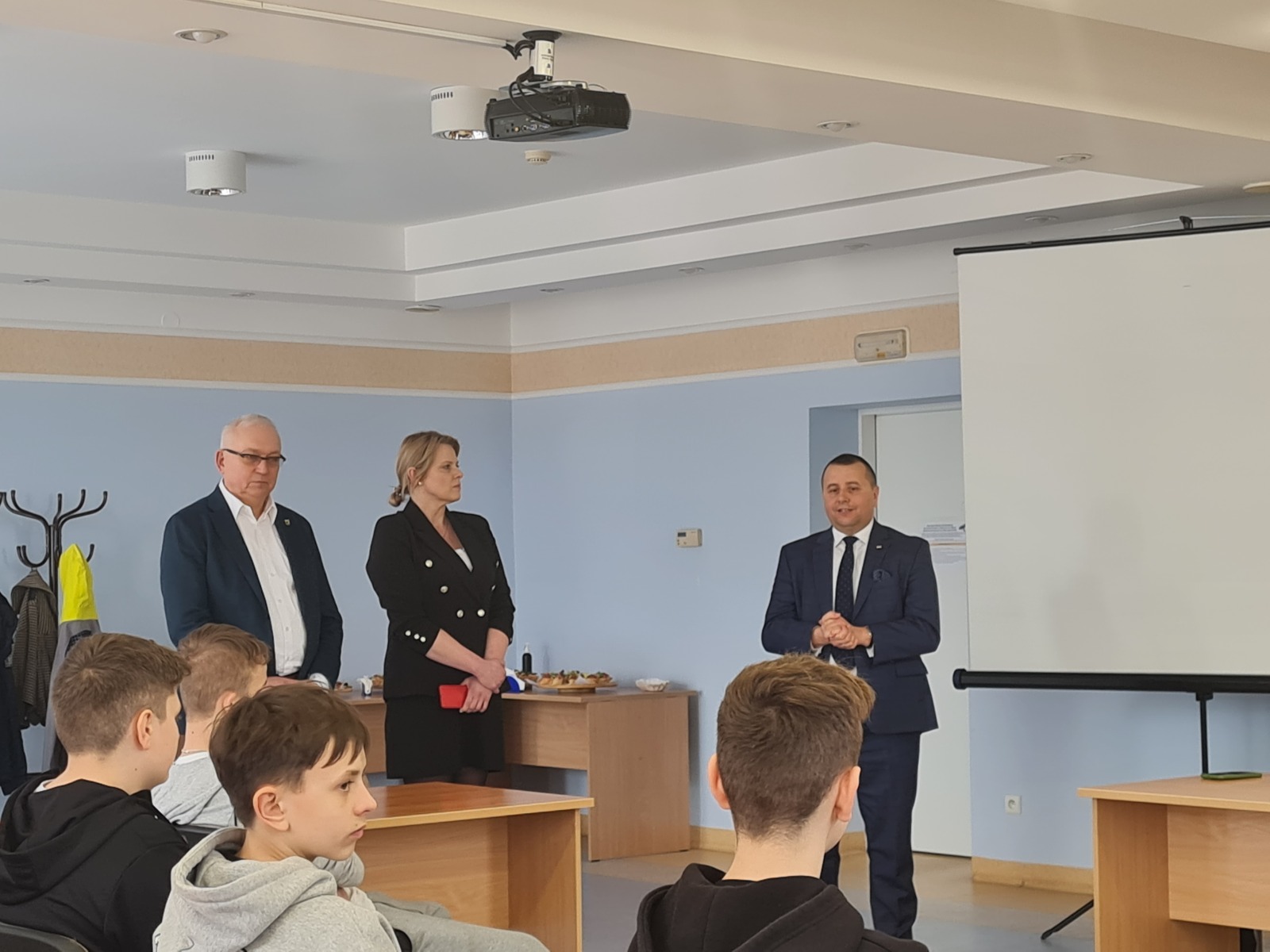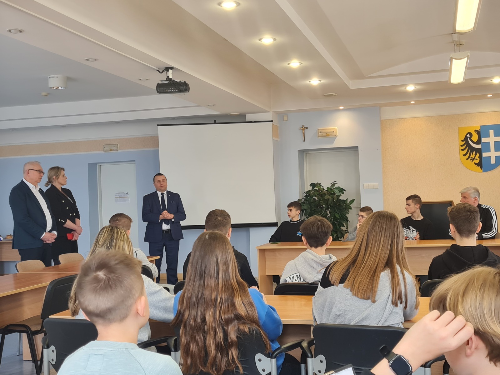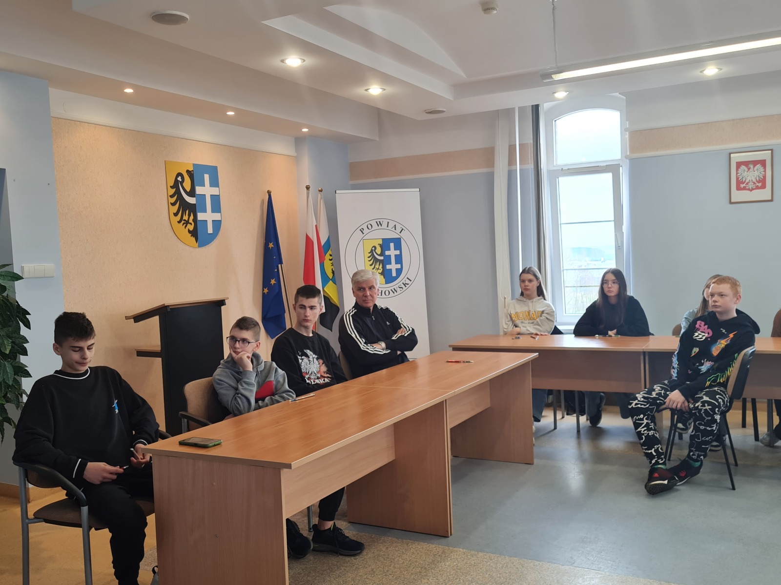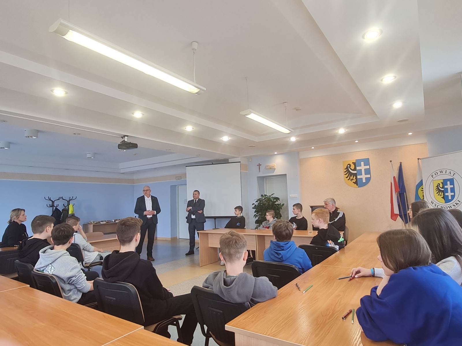 Młodzież została przywitana przez Starostę Wschowskiego Andrzeja Bielawskiego oraz Wicestarostę Wschowskiego Waldemara Starostę, którzy przybliżyli strukturę organizacyjną oraz zadania Powiatu.