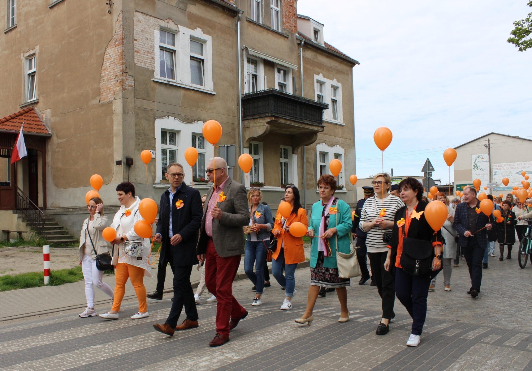Barwny korowód prowadzony głównymi ulicami Wschowy przez Zespół Mażoretek Finezja składający się m.in. z przedszkolaków, uczniów, podopiecznych Stowarzyszenia Na Rzecz Osób Niepełnosprawnych “Nasz Ośrodek”, uczestników Warsztatów Terapii Zajęciowej, seniorów z Dziennego Domu Senior+ oraz rodziców i mieszkańców gminy, dotarł na Rynek, gdzie punktem kulminacyjnym było wspólne wypuszczenie balonów i odśpiewanie hymnu przez uczniów SOSW we Wschowie, skomponowanego specjalnie na to wydarzenie.