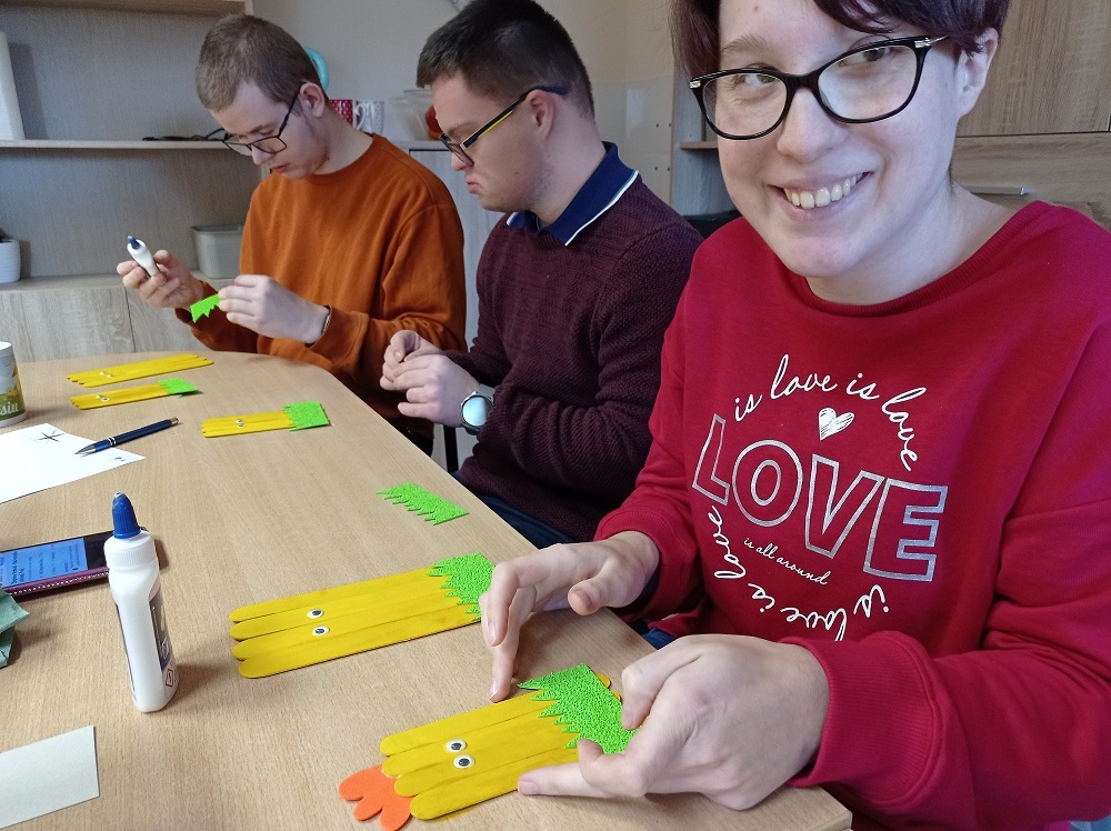 Wraz z końcem czerwca zakończyły się również zajęcia plastyczne realizowane w ramach pilotażowego programu Rehabilitacja 25 plus (finansowanego przez PFRON), które w SOSW we Wschowie były realizowane już od jesieni 2022r. Przez ostatnich kilka miesięcy powstało wiele ciekawych prac, które były dla uczestników kolejną  „przygodą” artystyczną i możliwością do nabycia nowych umiejętności. Wykonywane były stroiki i dekoracje wielkanocne, piękne motyle z papieru, „łapacze snów” z kolorowymi wstążkami i wiele innych ręcznie wykonanych rzeczy. Nasi uczestnicy otwarci na nowe wyzwania opanowali nawet tajniki makramy, z którymi świetnie sobie poradzili. „Makramowe” liście cieszyły się ogromnym zainteresowaniem.  Nasi uczestnicy tworzyli także biżuterię, którą obdarowali swoich bliskich. Kończącym akcentem zajęć było ozdobienie pamiątkowych koszulek w kolorowe motywy.