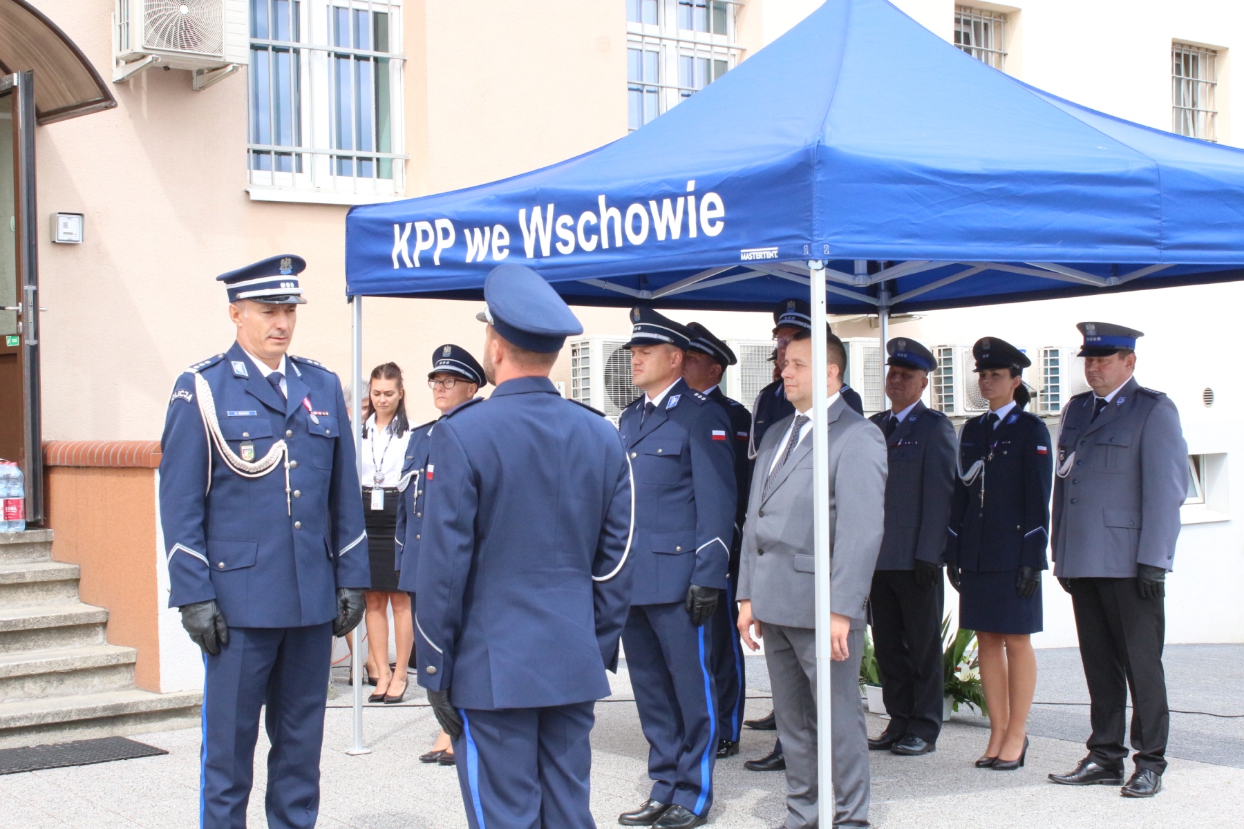 Następnie na dziedzińcu Komendy Powiatowej Policji we Wschowie przy popiersiu Marszałka Józefa Piłsudskiego odbył się uroczysty apel podczas którego inspektor Szymon Sędzik – Zastępca Komendanta Wojewódzkiego Policji w Gorzowie Wielkopolskim wraz z komisarz Andrzeliką Łuczak – Komendantem Komendy Powiatowej Policji we Wschowie wręczyli awanse na wyższe stopnie.