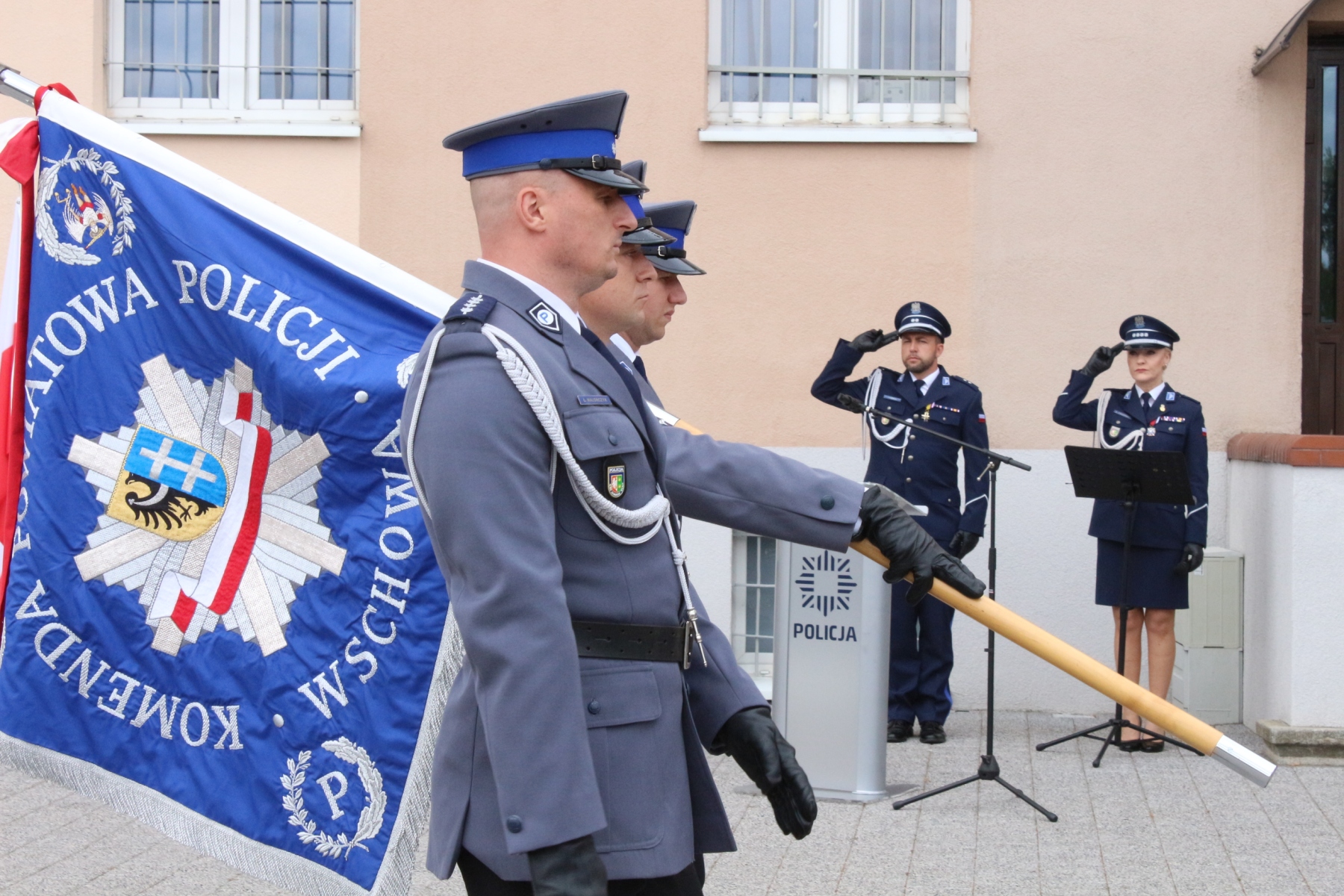 Starosta Wschowski Andrzej Bielawski podziękował za zaangażowanie w służbę na rzecz utrzymania porządku publicznego i zapewnienia bezpieczeństwa mieszkańcom Powiatu Wschowskiego oraz pogratulował wszystkim wyróżnionym funkcjonariuszom.