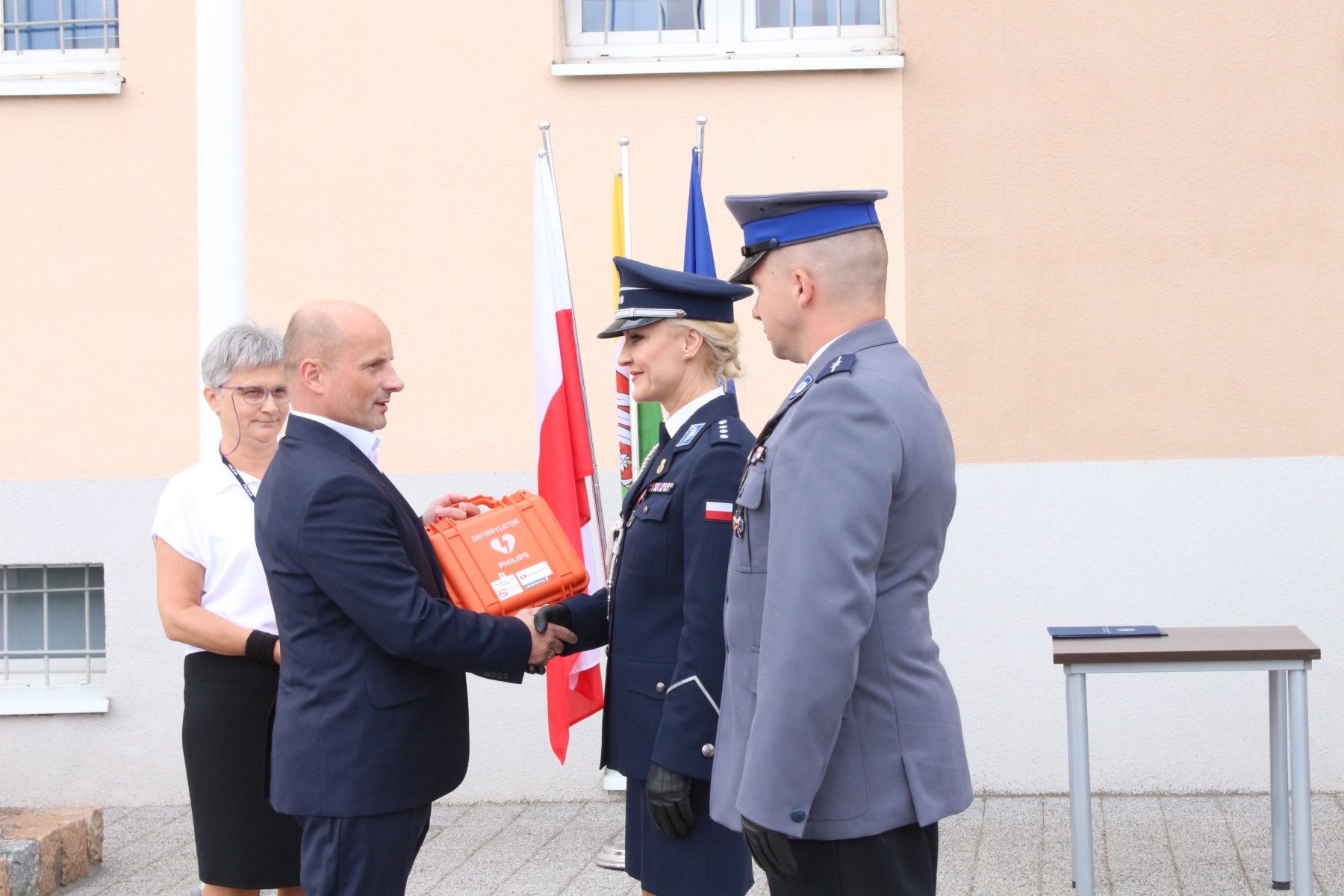 Starosta Wschowski Andrzej Bielawski podziękował za zaangażowanie w służbę na rzecz utrzymania porządku publicznego i zapewnienia bezpieczeństwa mieszkańcom Powiatu Wschowskiego oraz pogratulował wszystkim wyróżnionym funkcjonariuszom.