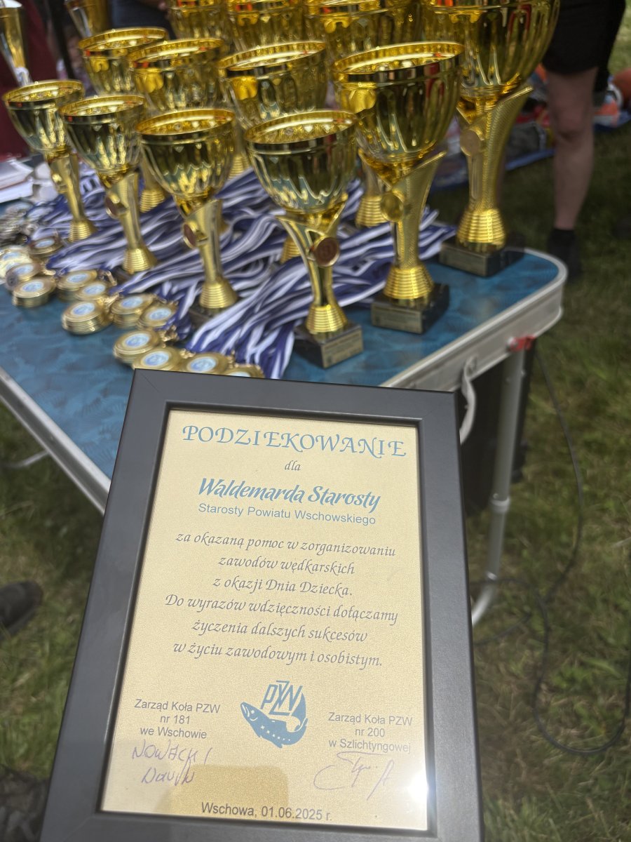 Każde dziecko biorące udział w zawodach otrzymało upominek, a najlepsi w swoich kategoriach zostali uhonorowani pucharami i dyplomami. Nagrody wręczył Tomasz Urbański, członek Zarządu Powiatu Wschowskiego, reprezentujący honorowego patrona wydarzenia – Starostę Wschowskiego Burmistrz Szlichtyngowej Pani Jolanta Wielgus oraz Prezes PZW Koło Nr 181 Wschowa pan Robert Nowak, a także Prezes PZW „Kaszalot” Szlichtyngowa pan Adam Fałda. Jako Powiat Wschowski jesteśmy dumni, że możemy wspierać takie inicjatywy, aby budować i rozwijać w najmłodszych pasję i zamiłowanie do wędkowania.
