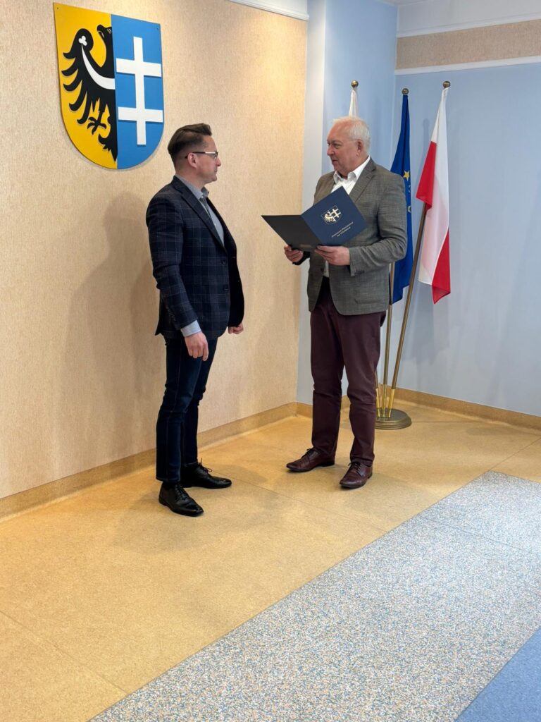 11 czerwca 2025 r. Starosta Wschowski Waldemar Starosta uroczyście wręczył akt powierzenia stanowiska Dyrektora I Zespołu Szkół im. Stanisława Staszica we Wschowie Panu Piotrowi Wielandowi.