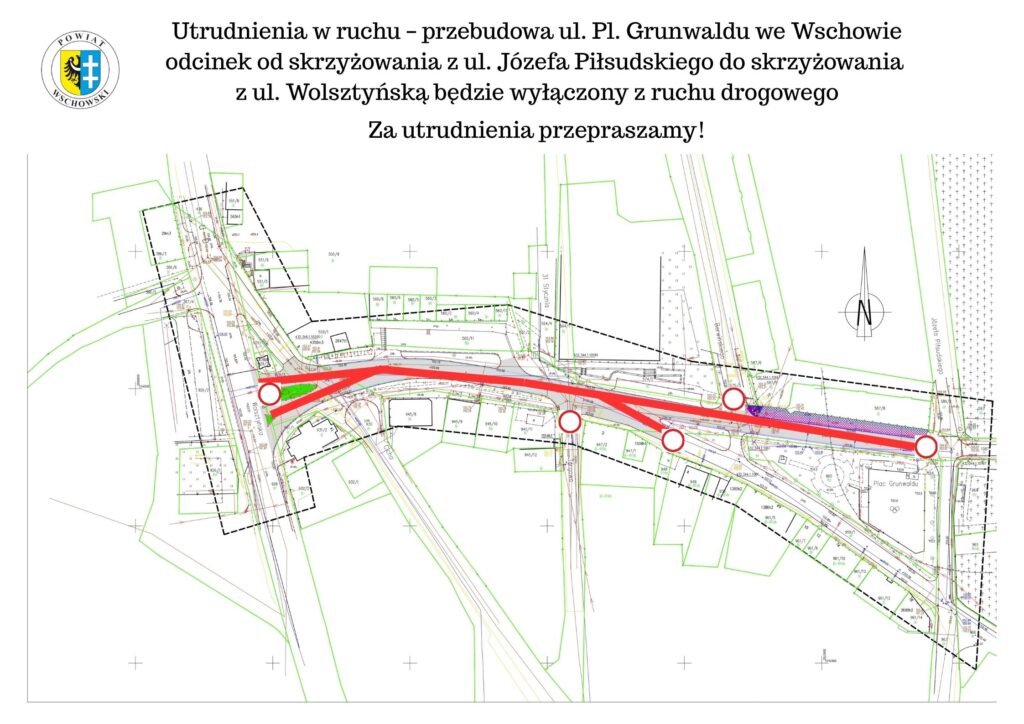 W dniu 9 lipca br. (środa) rozpoczną się prace polegające na przebudowie ul. Pl. Grunwaldu wraz ze skrzyżowaniem z ul. Cichą we Wschowie na odcinku od skrzyżowania z ul. Józefa Piłsudskiego do skrzyżowania z ul. Wolsztyńską. W związku z trwającymi robotami ww. odcinek drogi zostanie zamknięty.