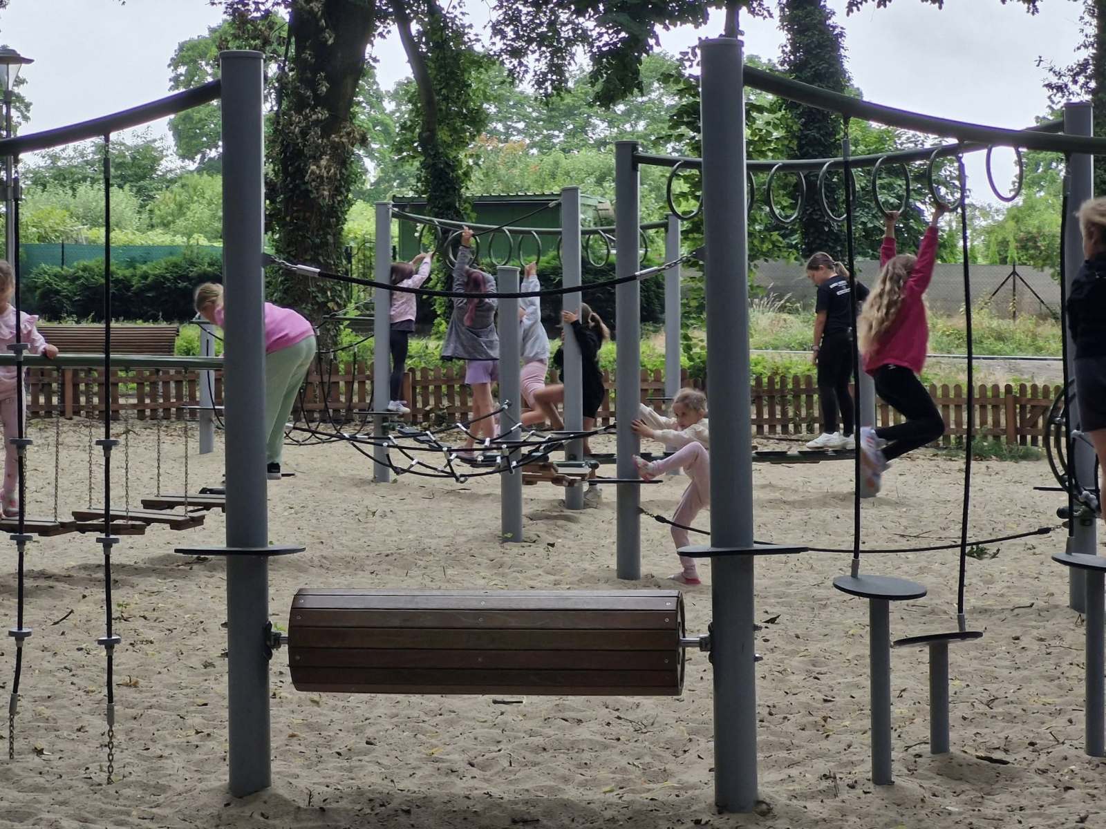 Ostatniego dnia pogoda niestety nie dopisała, jednak dzięki życzliwości pani Anny Huzar, dyrektor Szkoły Podstawowej nr 3 we Wschowie, dzieci mogły bezpiecznie kontynuować zajęcia w sali gimnastycznej szkoły.