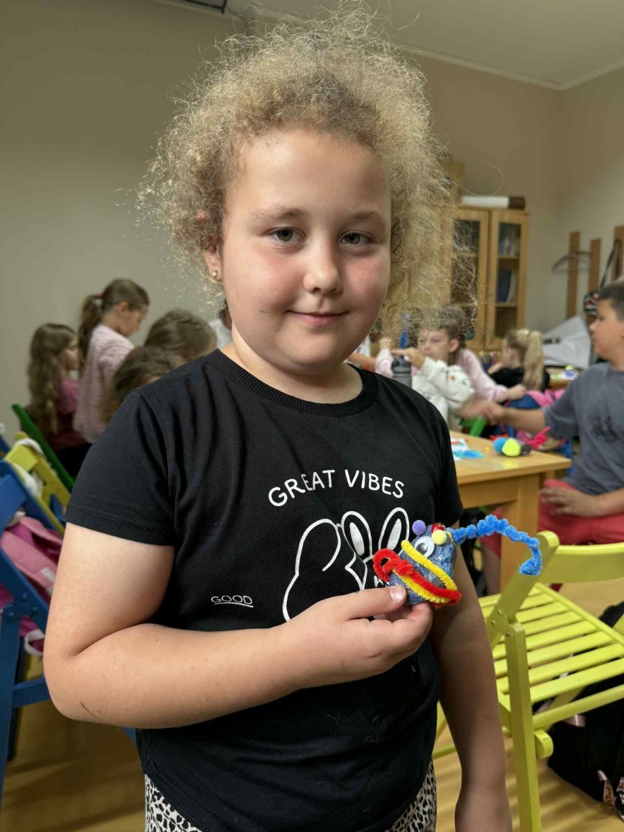 Jednym z najbardziej ekscytujących momentów była wizyta… kosmicznych stworków, które „przybyły” do Poradni i poruszyły wyobraźnię wszystkich obecnych. Zajęcia tematyczne oparte na fantastycznych przygodach pozwoliły dzieciom rozwijać kreatywność i współpracę w grupie.