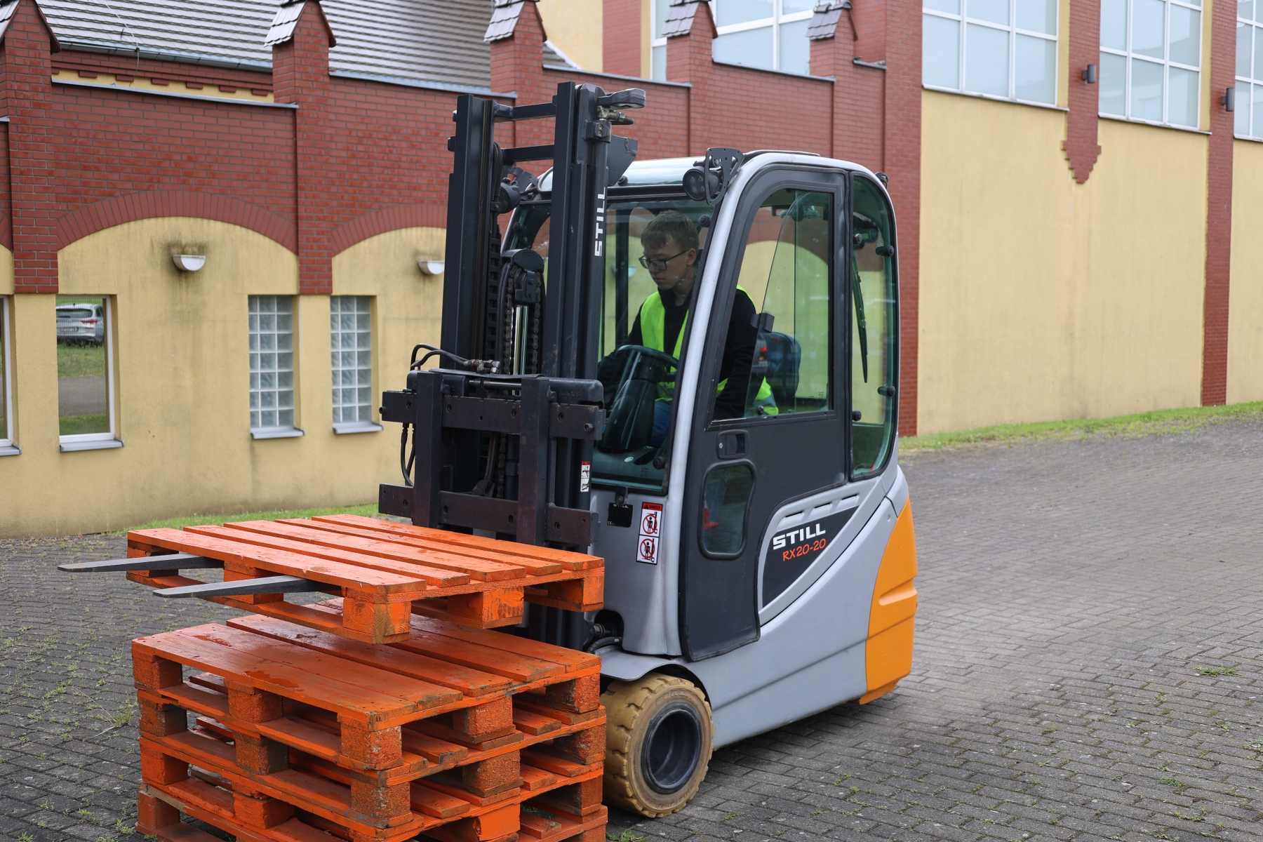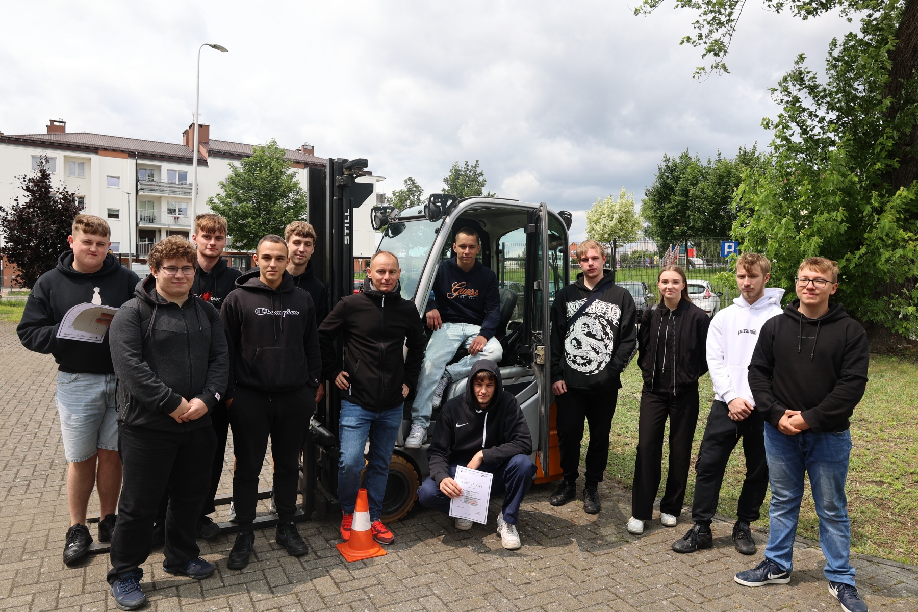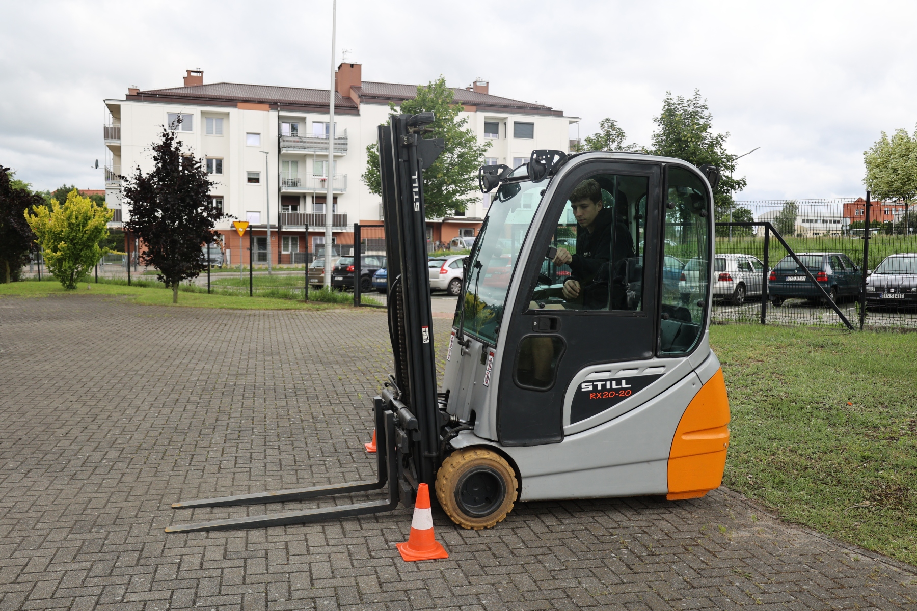 Podobnie wygląda sytuacja z kursem wózka widłowego. Młodzież zdawała egzamin przed komisją Urzędu Dozoru Technicznego, składający się z części teoretycznej i praktycznej. Dodatkowo uczyła się bezpiecznej wymiany butli LPG.