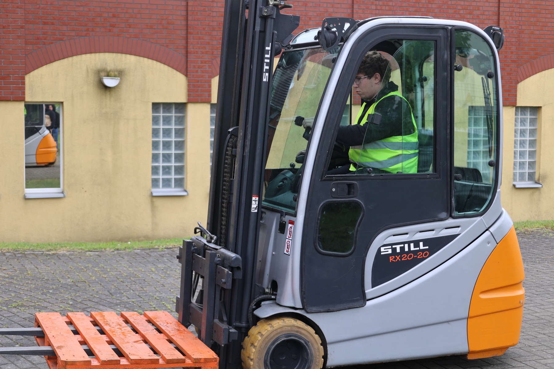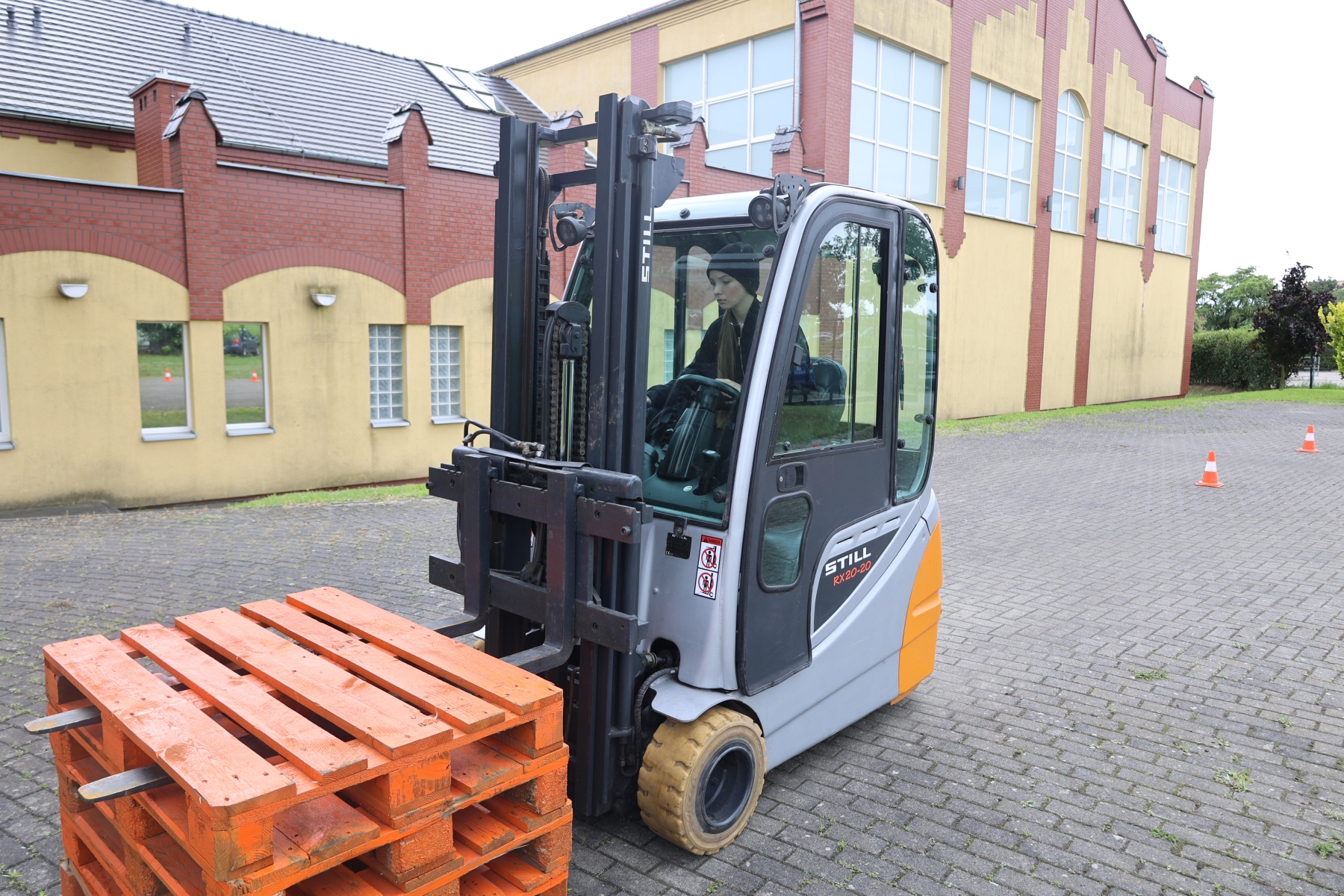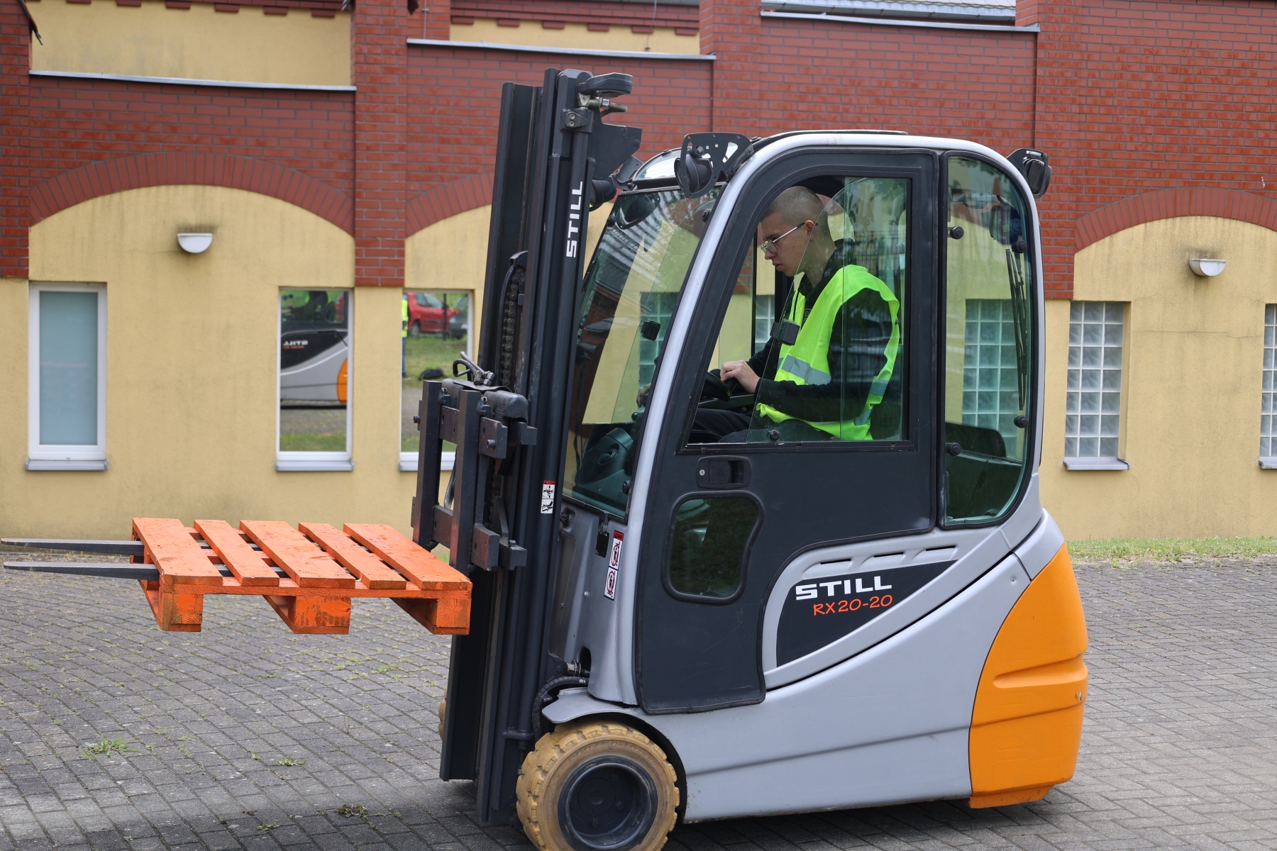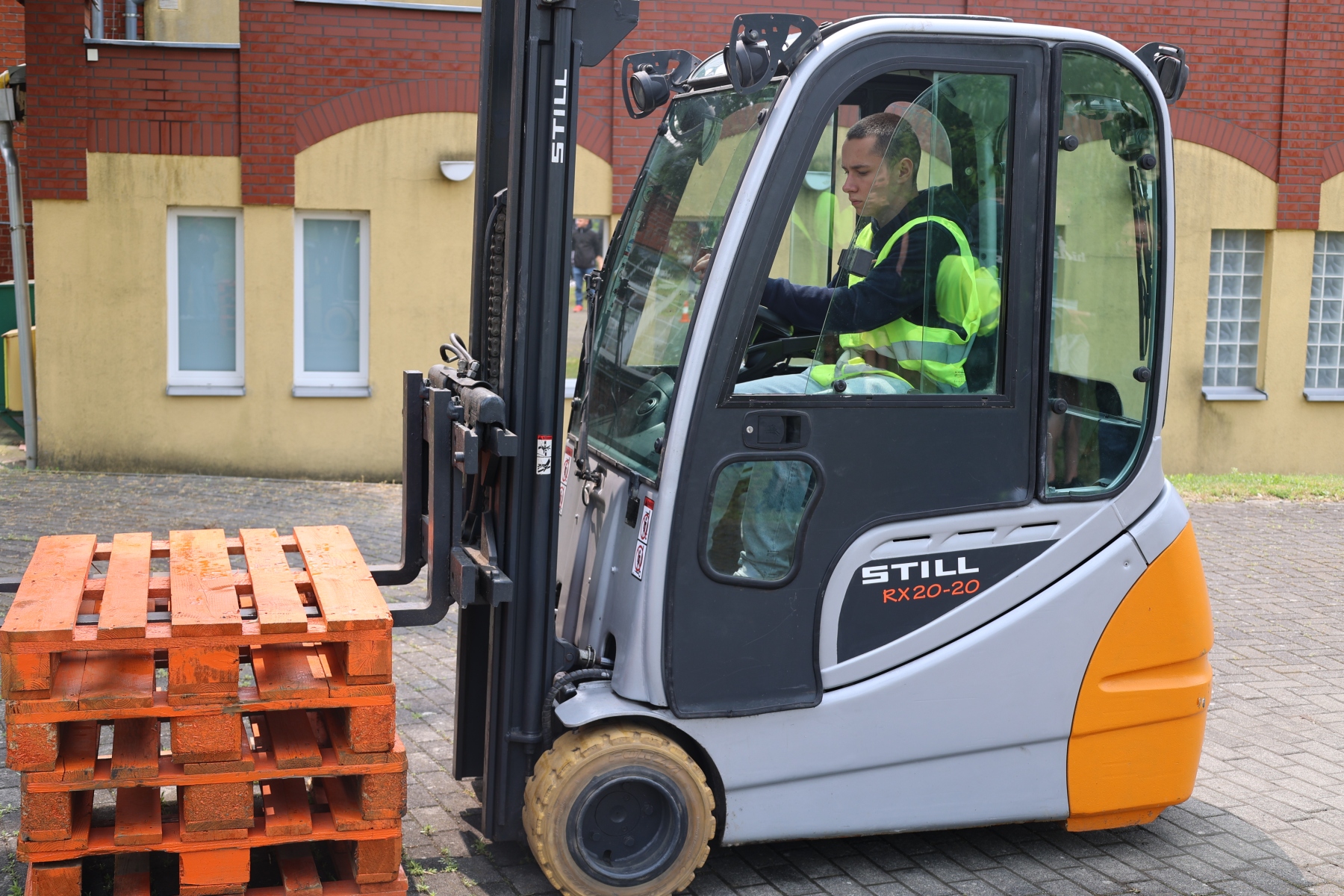 Podobnie wygląda sytuacja z kursem wózka widłowego. Młodzież zdawała egzamin przed komisją Urzędu Dozoru Technicznego, składający się z części teoretycznej i praktycznej. Dodatkowo uczyła się bezpiecznej wymiany butli LPG.