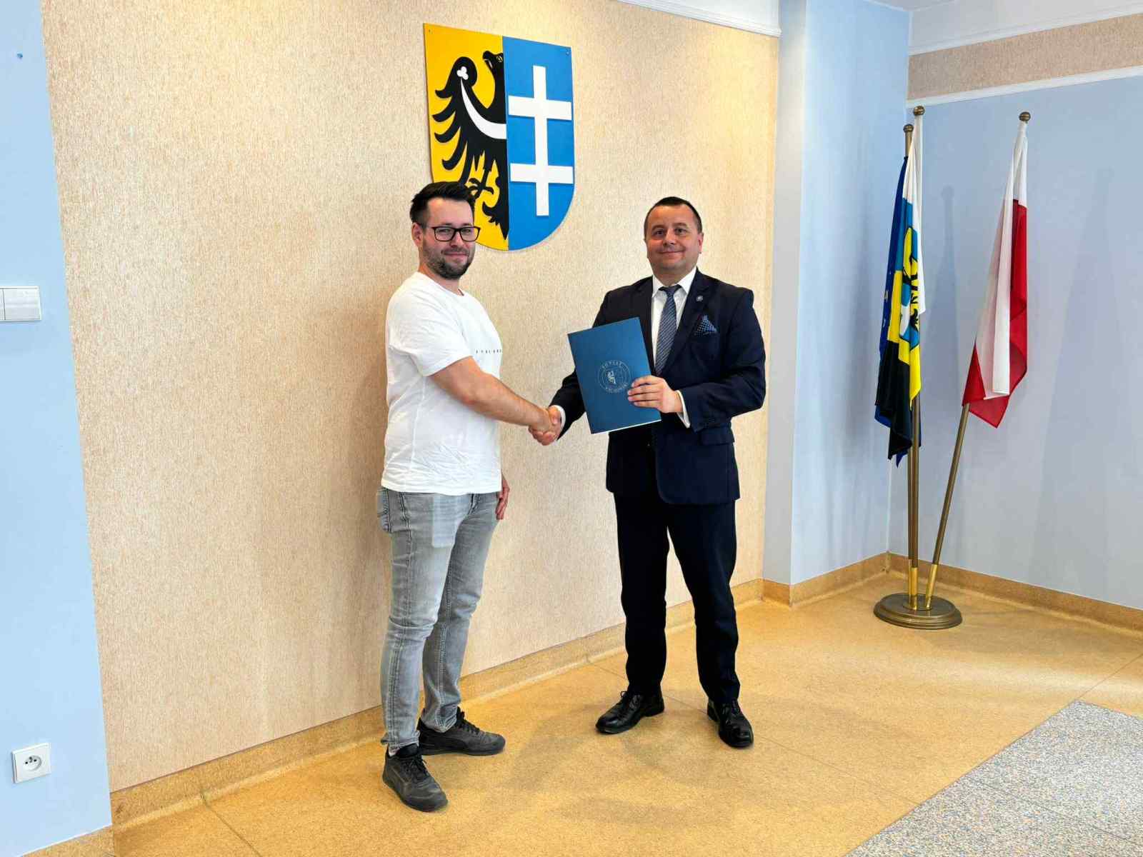 Powiat Wschowski rozpoczyna realizację kolejnego zadania. Wicestarosta Wschowski Andrzej Bielawski wraz z Członkiem Zarządu Powiatu Wschowskiego Tomaszem Urbańskim podpisali umowę na wykonanie zadania pn.: