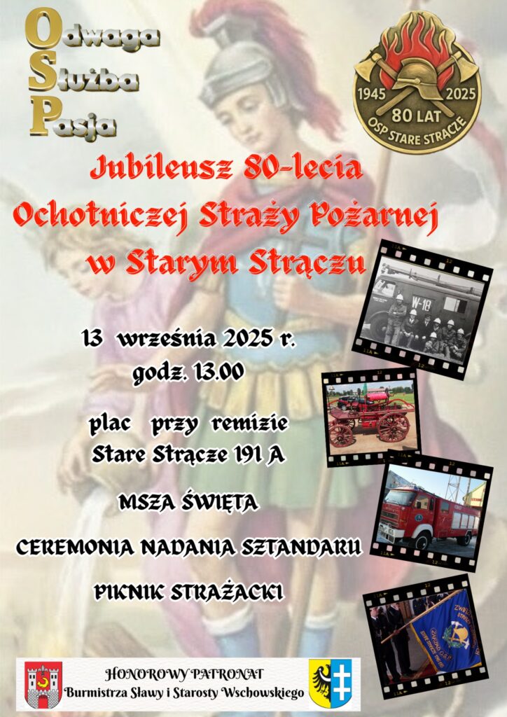 Ochotnicza Straż Pożarna w Starym Strączu obchodzi w tym roku wyjątkowy jubileusz – 80-lecie działalności. Uroczystości zaplanowano na 13 września 2025 roku i odbędą się na placu przy remizie OSP.