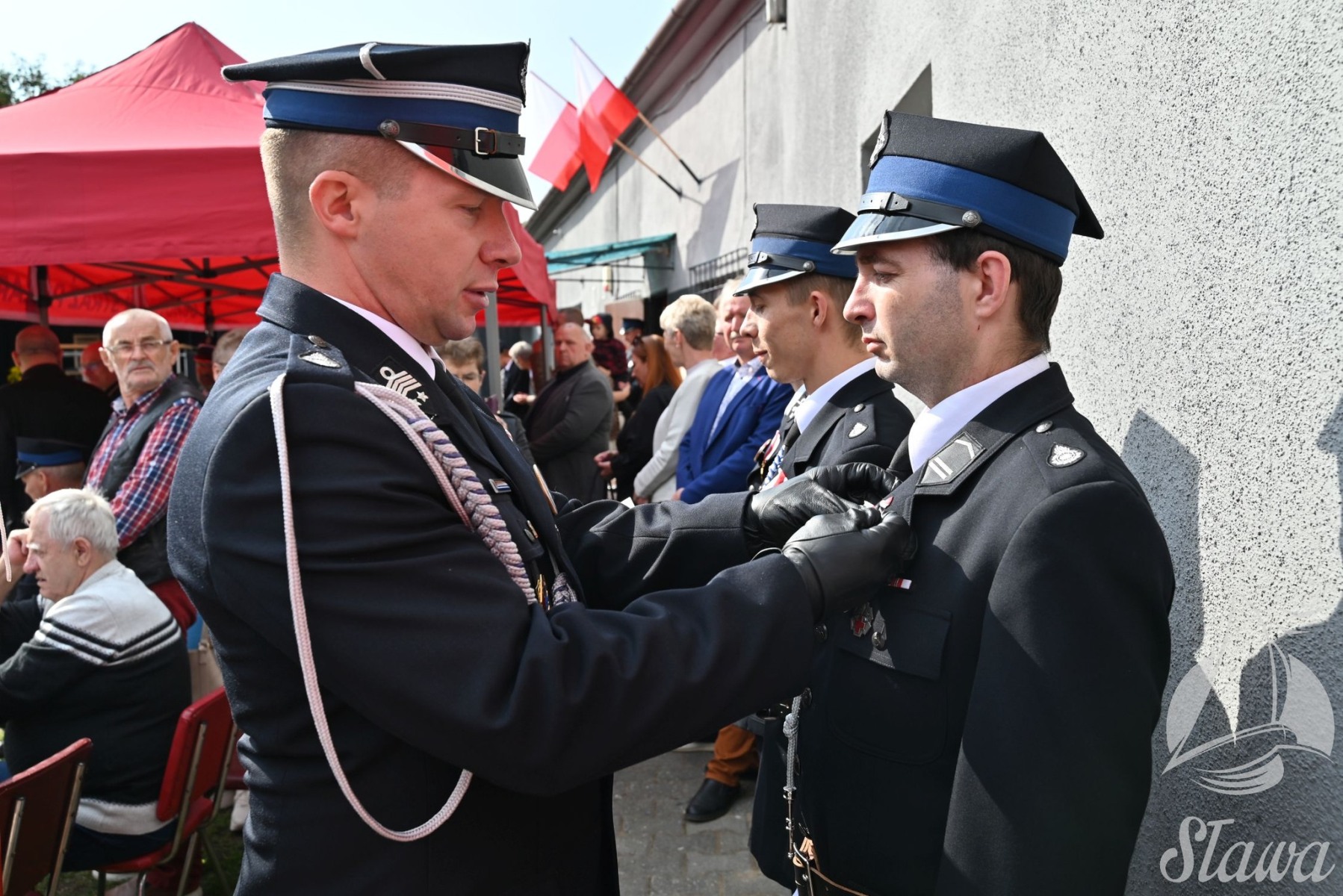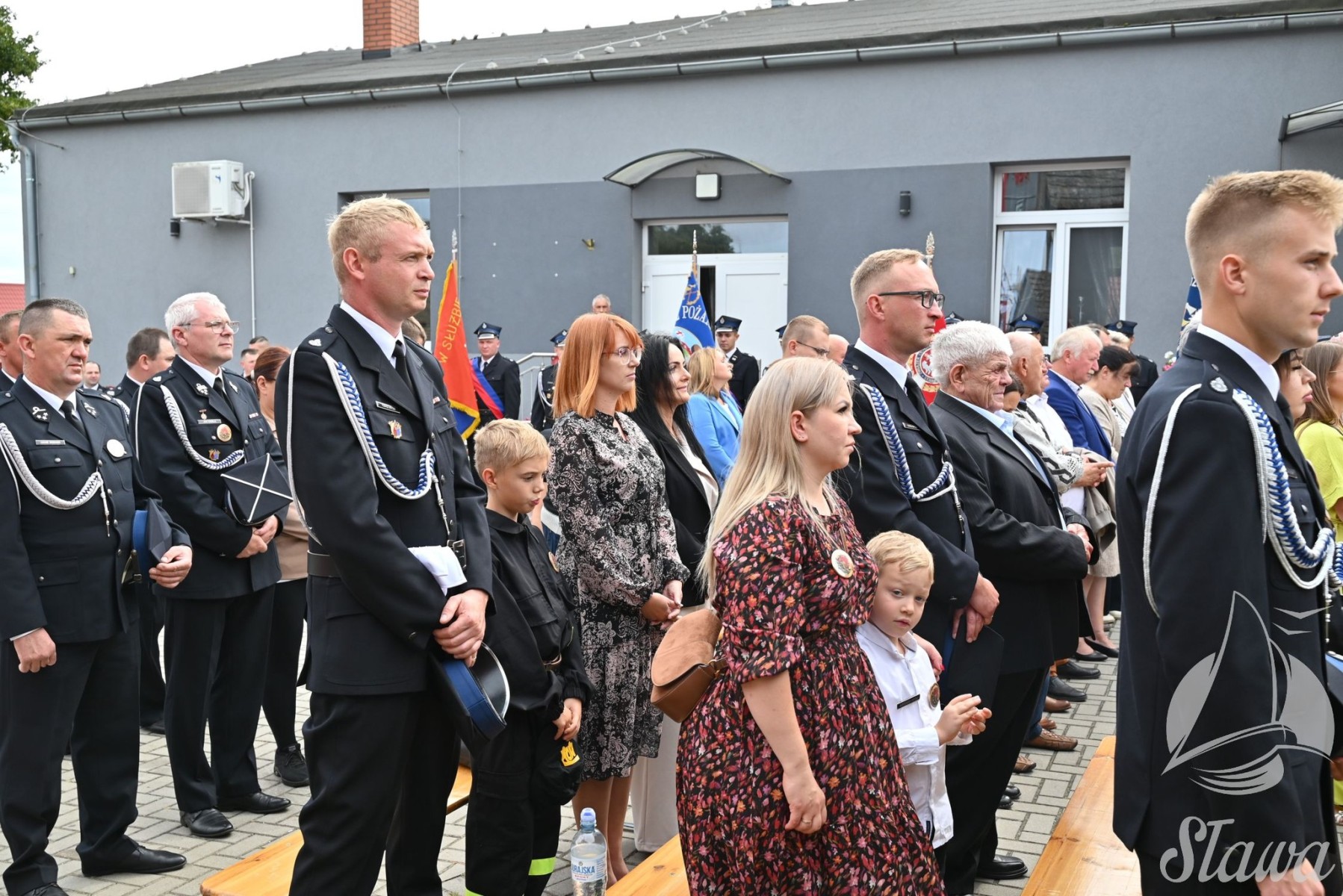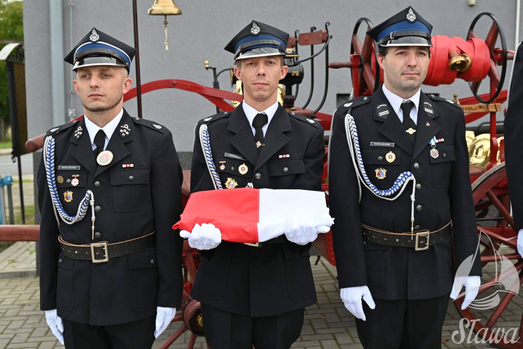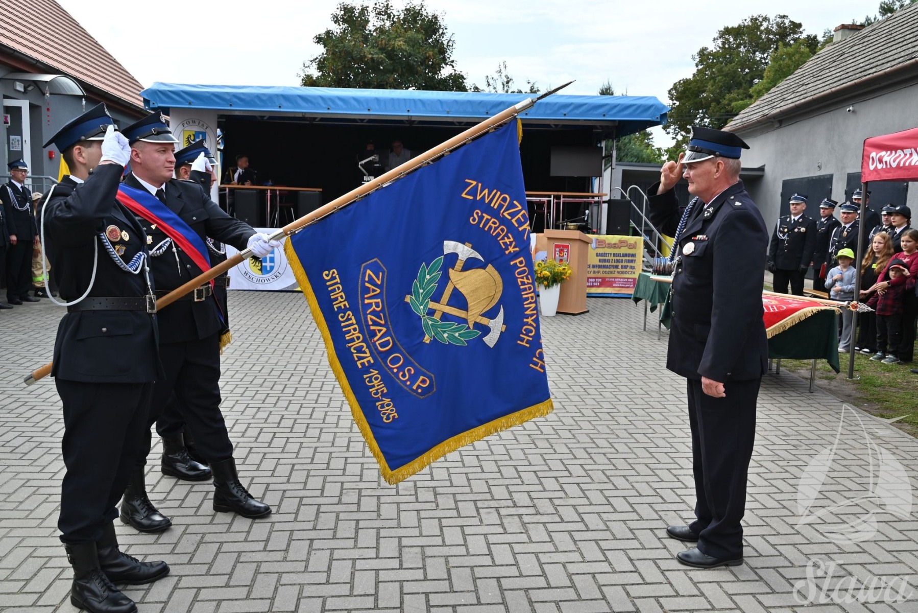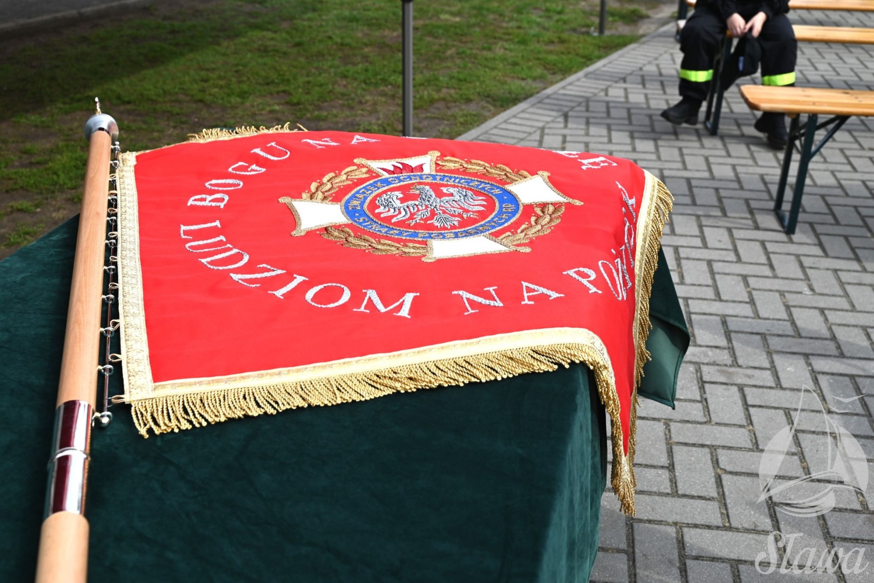 Szczególnym momentem jubileuszu była ceremonia zmiany sztandaru. Po pożegnaniu dotychczasowego, towarzyszącego druhom od 1988 roku, strażacy otrzymali nowy sztandar ufundowany przez społeczność lokalną i sponsorów. Akt ufundowania odczytał i przekazał Przewodniczący Komitetu Fundacji Sztandaru – Burmistrz Sławy Cezary Sadrakuła, a symbolicznym gestem było przybicie pamiątkowego gwoździa do tablicy fundatorów.