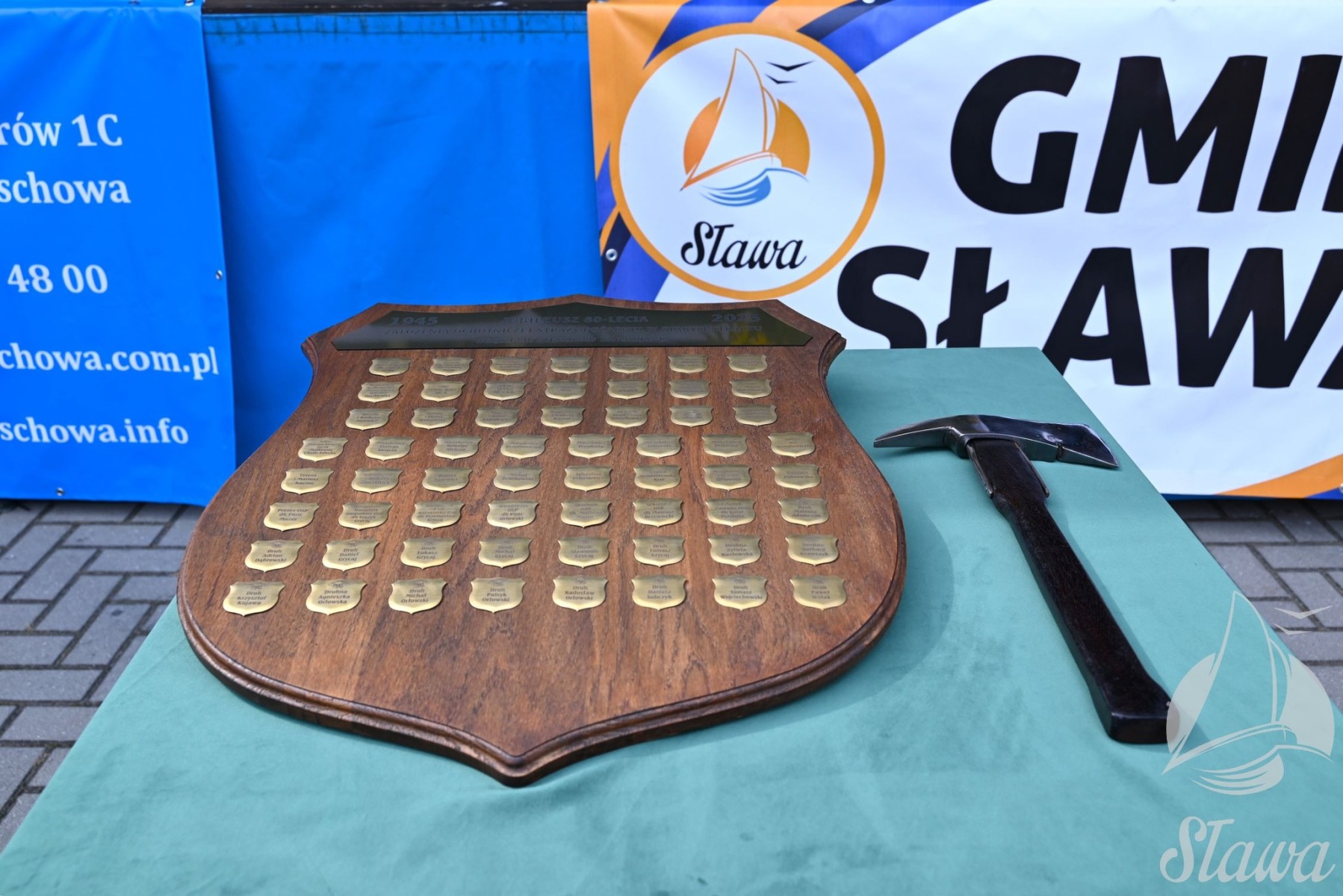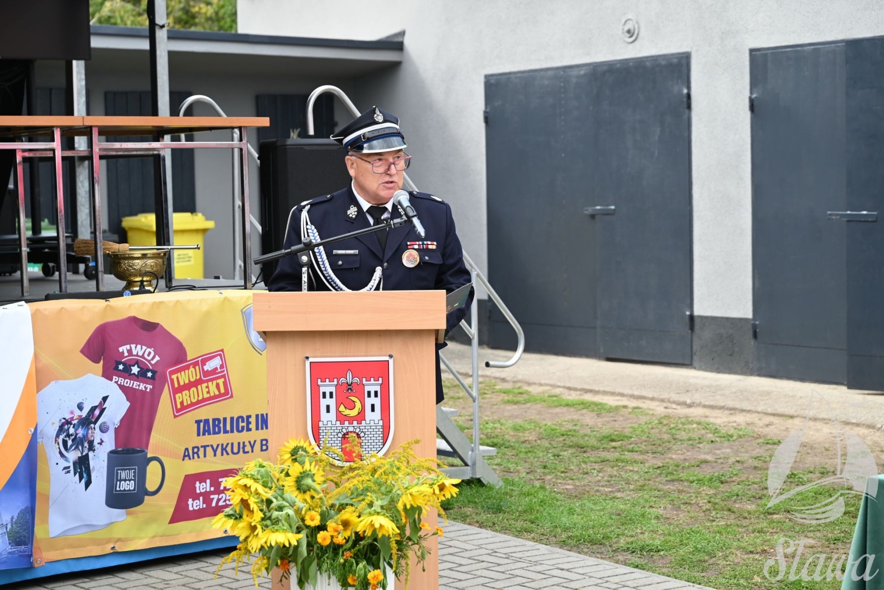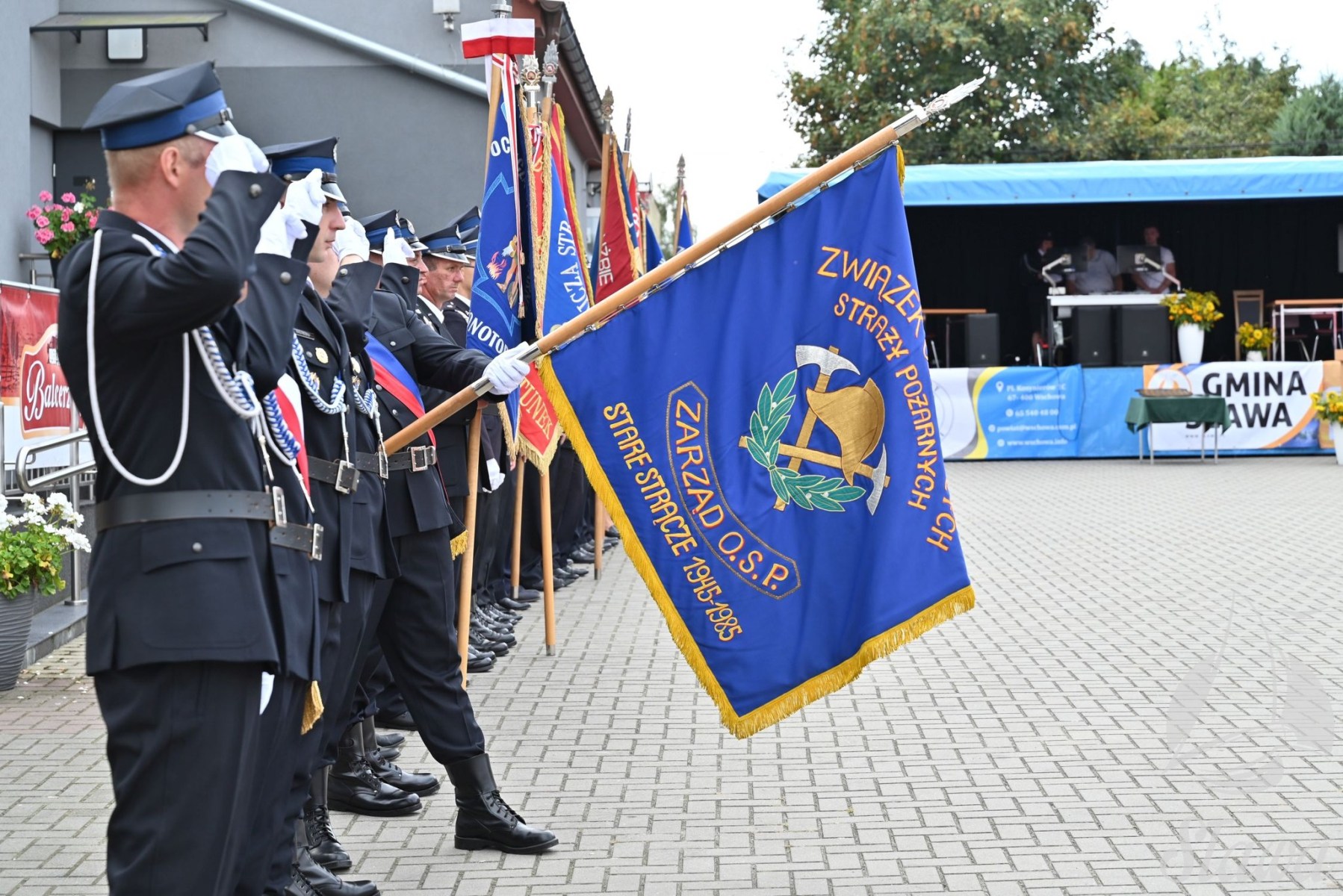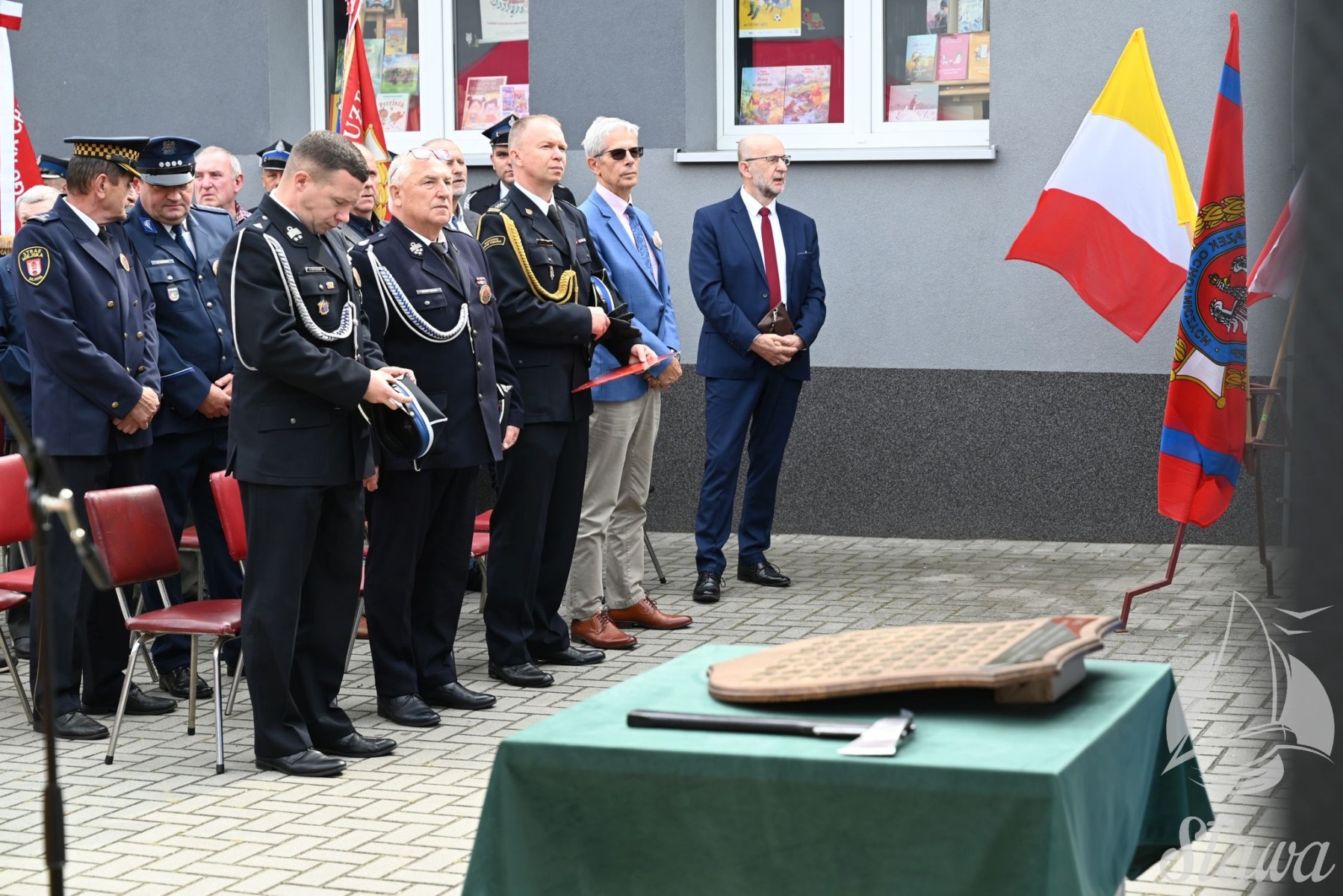 Szczególnym momentem jubileuszu była ceremonia zmiany sztandaru. Po pożegnaniu dotychczasowego, towarzyszącego druhom od 1988 roku, strażacy otrzymali nowy sztandar ufundowany przez społeczność lokalną i sponsorów. Akt ufundowania odczytał i przekazał Przewodniczący Komitetu Fundacji Sztandaru – Burmistrz Sławy Cezary Sadrakuła, a symbolicznym gestem było przybicie pamiątkowego gwoździa do tablicy fundatorów.