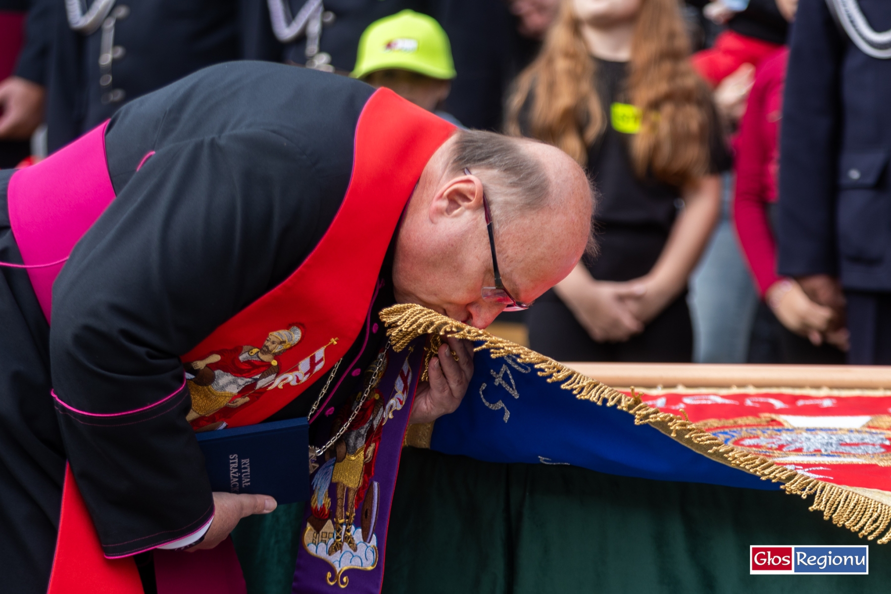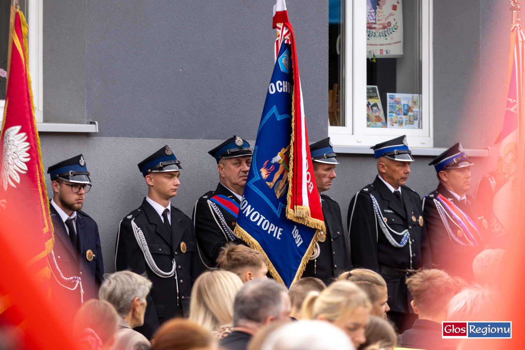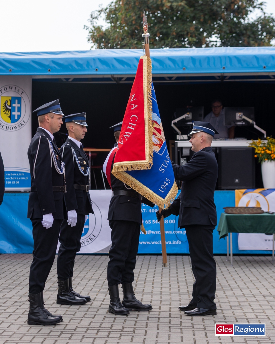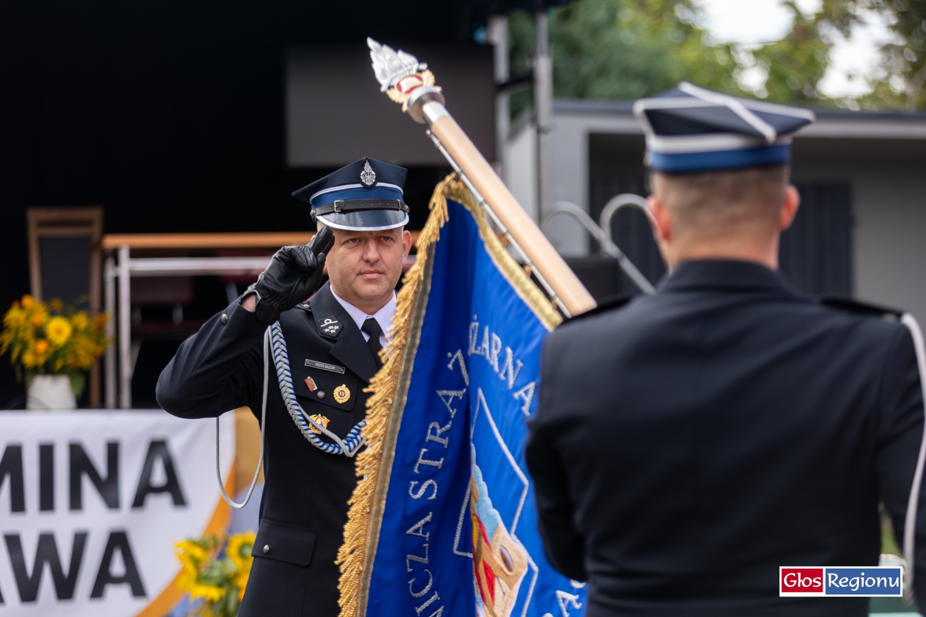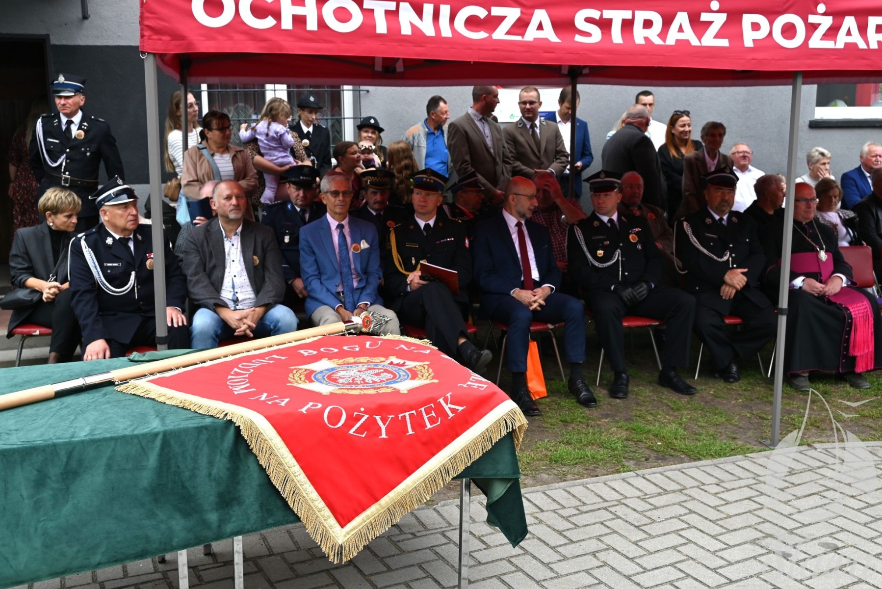 Szczególnym momentem jubileuszu była ceremonia zmiany sztandaru. Po pożegnaniu dotychczasowego, towarzyszącego druhom od 1988 roku, strażacy otrzymali nowy sztandar ufundowany przez społeczność lokalną i sponsorów. Akt ufundowania odczytał i przekazał Przewodniczący Komitetu Fundacji Sztandaru – Burmistrz Sławy Cezary Sadrakuła, a symbolicznym gestem było przybicie pamiątkowego gwoździa do tablicy fundatorów.