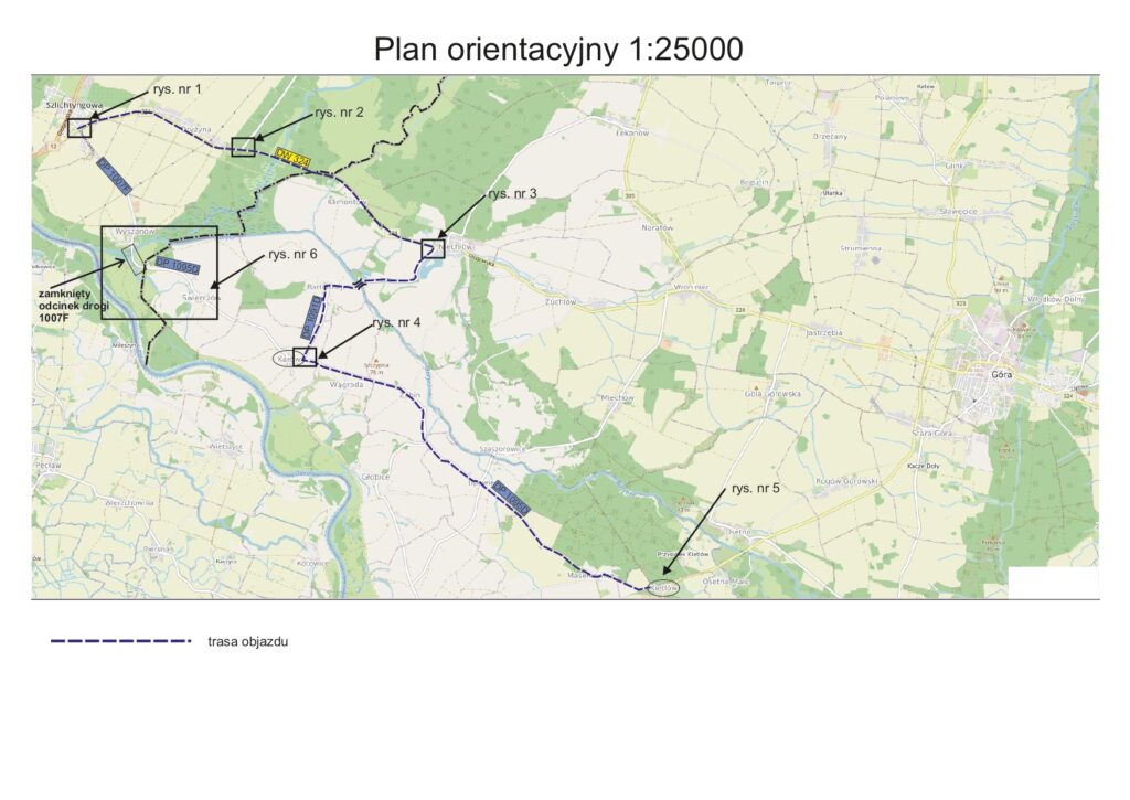 Od dzisiaj (15 września 2025 r.) zamknięty jest odcinek drogi – most na rzece Barycz w Wyszanowie (droga powiatowa nr 1007F).