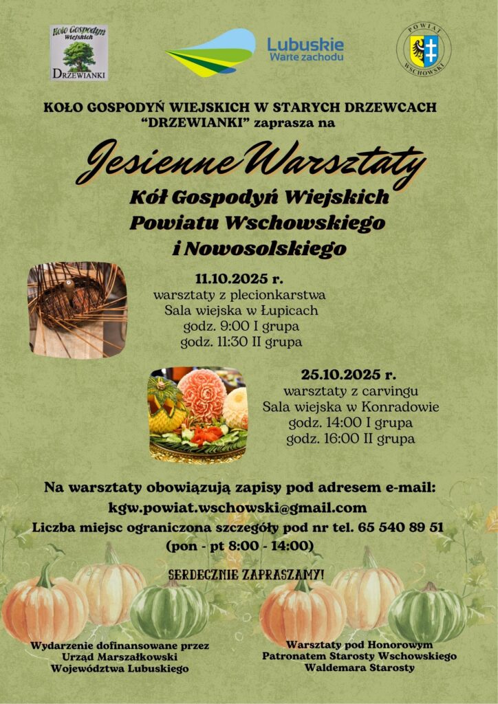 Warsztaty realizowane są w ramach projektu „Jesień z kulturą – smaki, zioła i rękodzieło naszych wsi”, dofinansowanego przez Urząd Marszałkowski Województwa Lubuskiego – „Lubuskie Warte Zachodu”, pod Honorowym Patronatem Starosty Wschowskiego Waldemara Starosty.