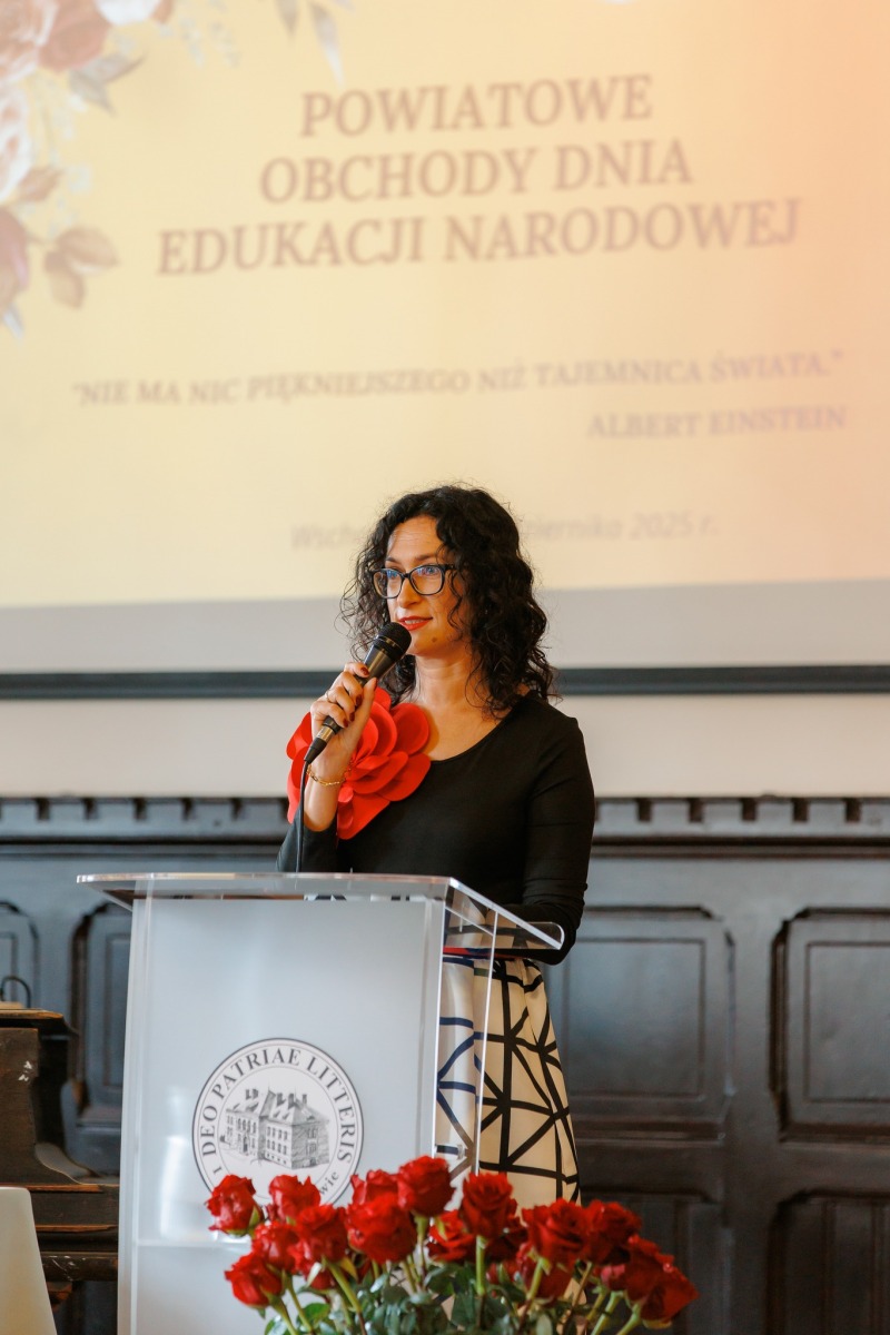 Uroczystość otworzyła dyrektor szkoły Agata Karolczyk-Kozyra, przywołując słowa Alberta Einsteina o tajemnicy świata. – Nauczyciele każdego dnia te tajemnice odkrywają, pokazują młodym ludziom, że świat nie jest gotowy i skończony, lecz pełen pytań, zjawisk i emocji – mówiła, podkreślając, że edukacja to przede wszystkim relacja między ludźmi, a nie jedynie instytucja czy system. Dyrektor zwróciła także uwagę na znaczenie edukacji włączającej, opartej na otwartości i dostrzeganiu potencjału w każdym uczniu. – To moment, w którym dziękujemy wszystkim, którzy tworzą edukację – nauczycielom, wychowawcom, pedagogom, pracownikom szkół i placówek – dodała.