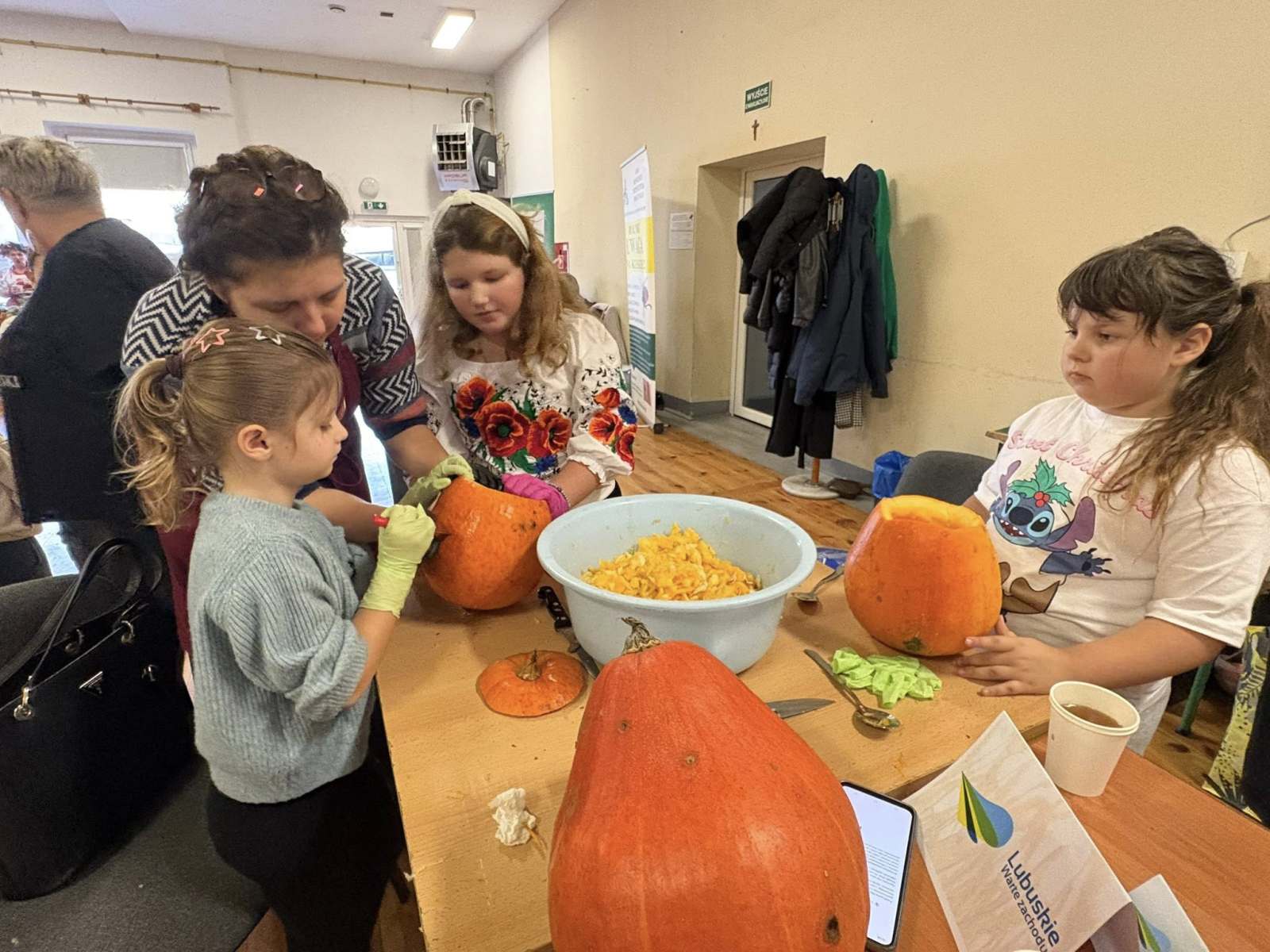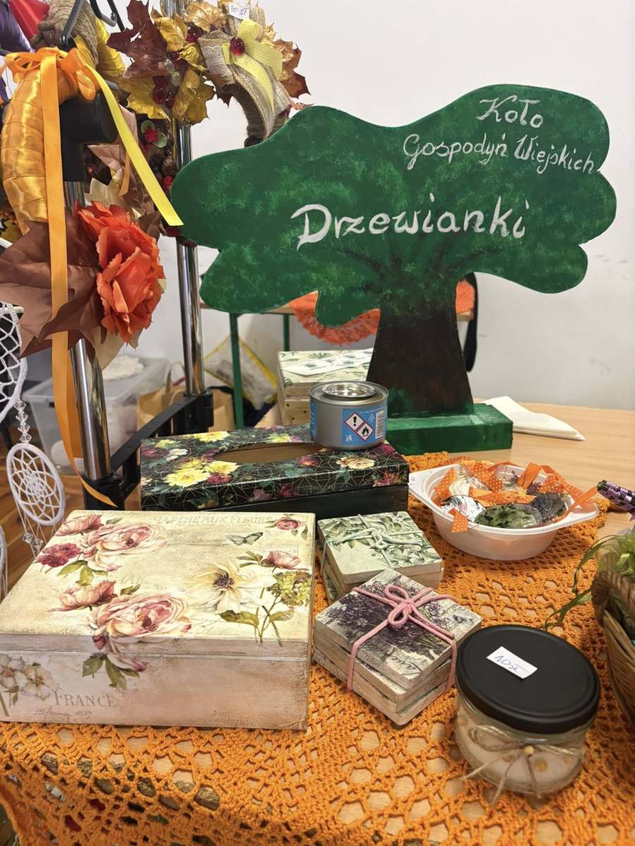 Na stoiskach przygotowanych przez Koła Gospodyń Wiejskich królowały ciasta, przetwory, soki i pachnące wypieki, a także piękne jesienne ozdoby, które można było zakupić, by wprowadzić do domu klimat złotej polskiej jesieni. Nie zabrakło również atrakcji dla najmłodszych – dzieci z radością uczestniczyły w warsztatach kreatywnych, podczas których wycinały i dekorowały dynie oraz tworzyły kolorowe lampiony.