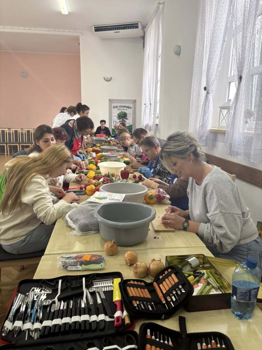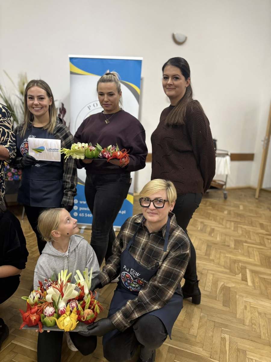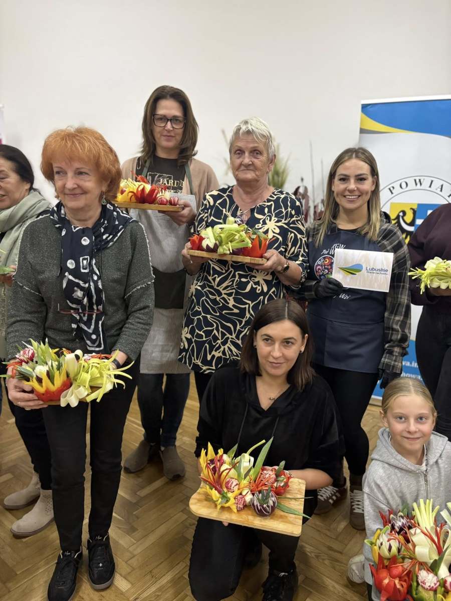 Pod okiem doświadczonej instruktorki pani Liliany, uczestnicy poznawali tajniki tworzenia efektownych dekoracji z marchwi, arbuzów, jabłek czy papryki. Zajęcia pozwoliły rozwinąć zdolności manualne, pobudziły wyobraźnię i udowodniły, że sztuka kulinarna może być nie tylko smaczna, ale i piękna.