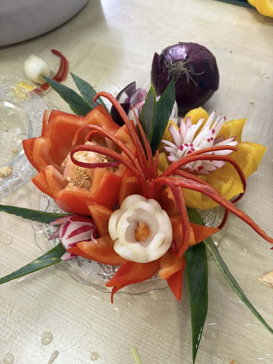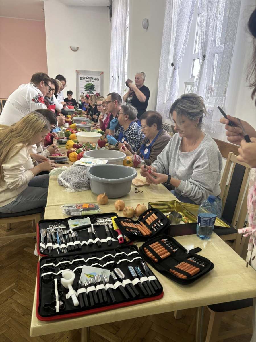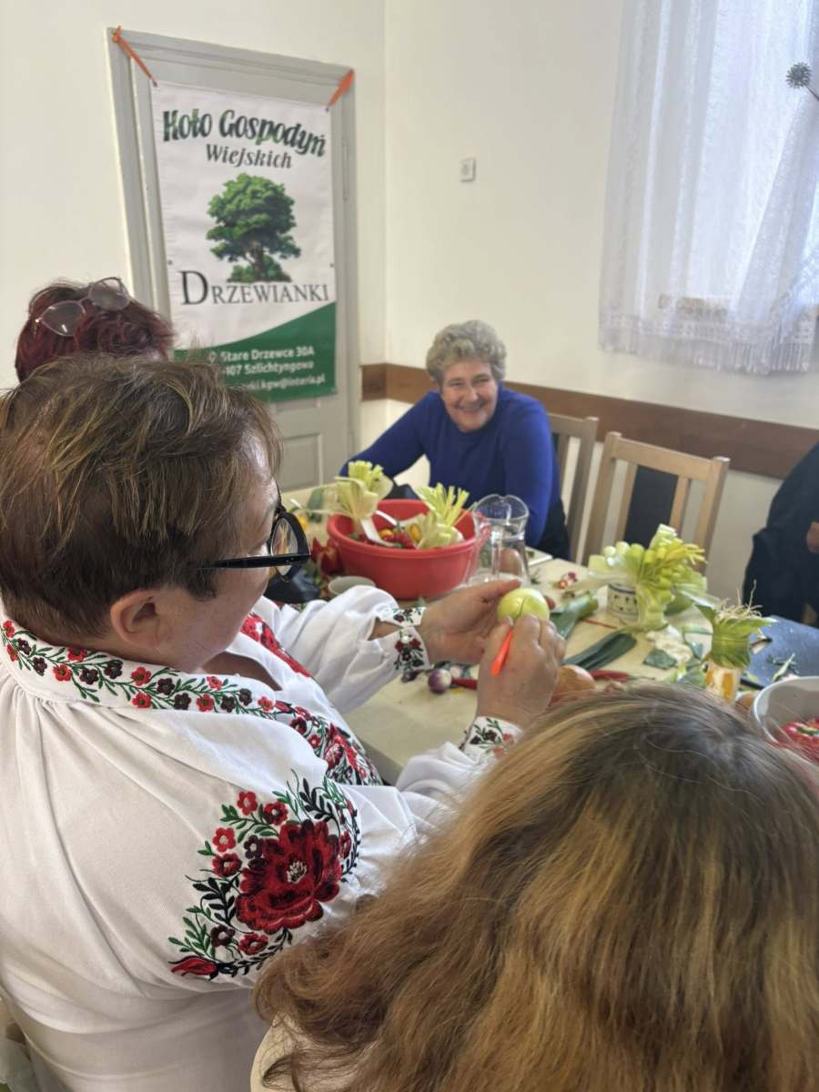 Pod okiem doświadczonej instruktorki pani Liliany, uczestnicy poznawali tajniki tworzenia efektownych dekoracji z marchwi, arbuzów, jabłek czy papryki. Zajęcia pozwoliły rozwinąć zdolności manualne, pobudziły wyobraźnię i udowodniły, że sztuka kulinarna może być nie tylko smaczna, ale i piękna.