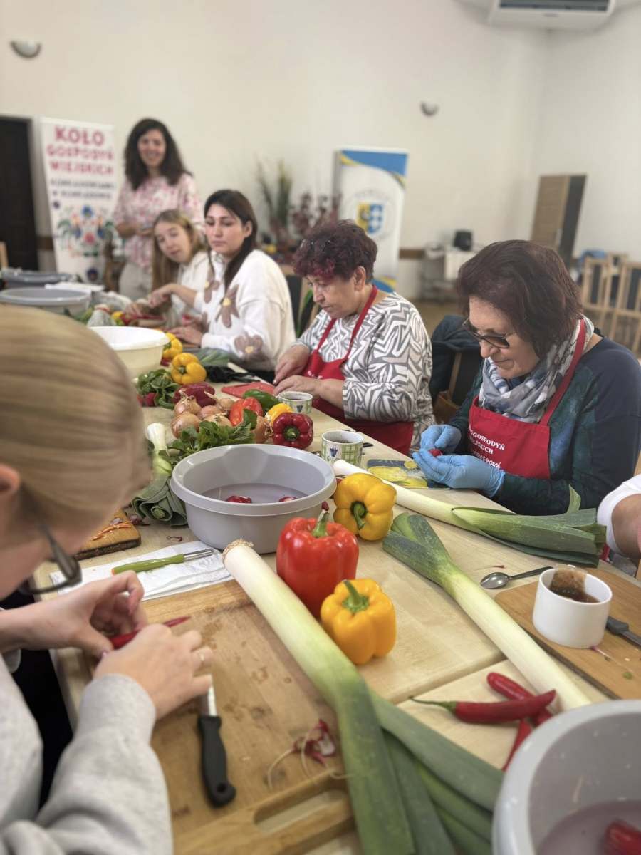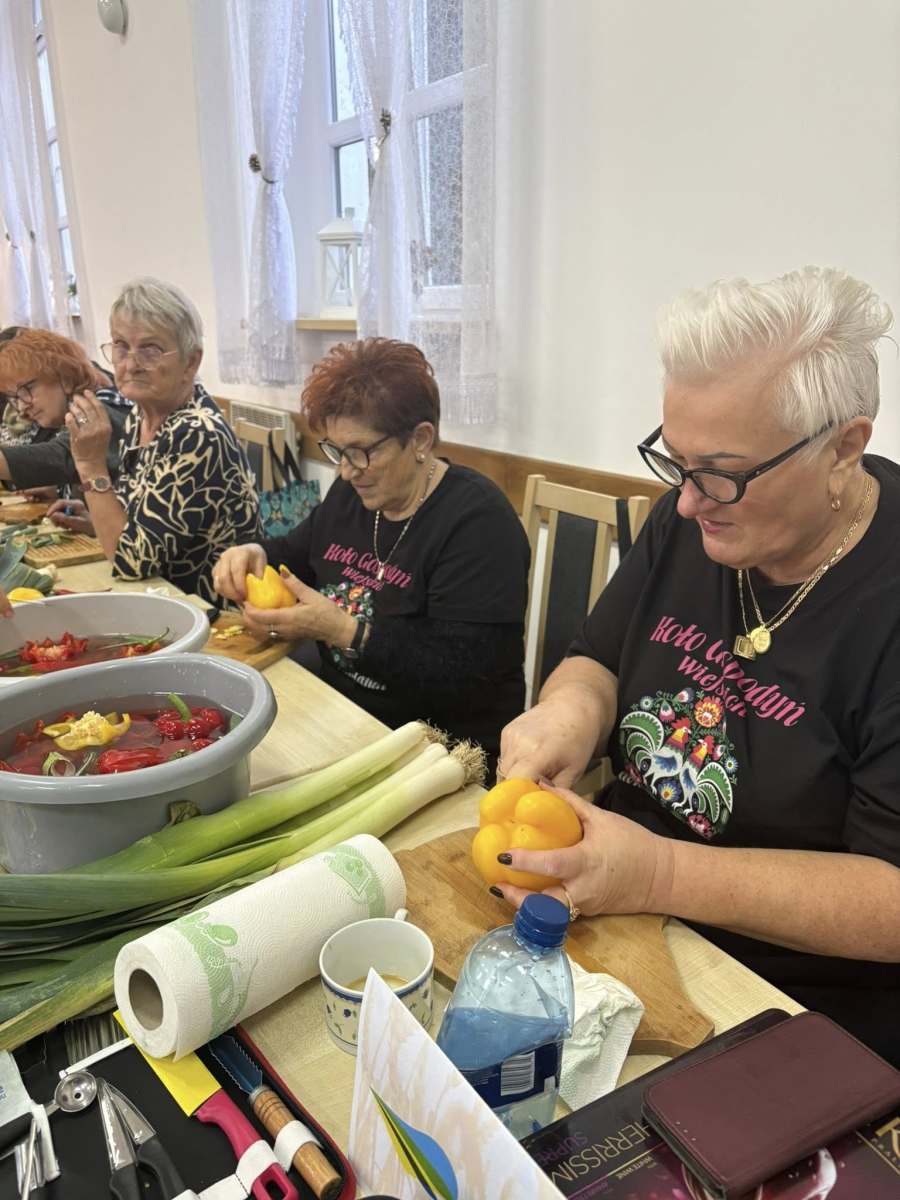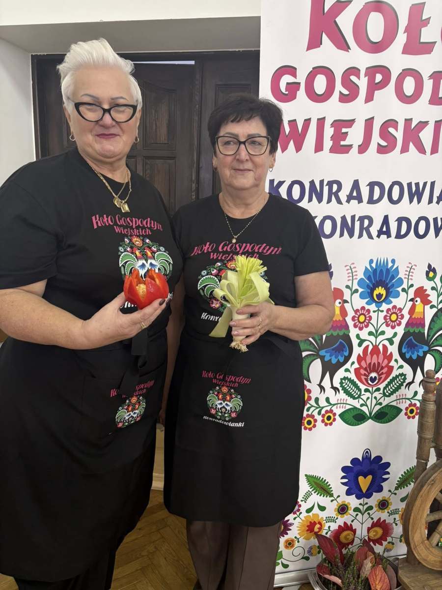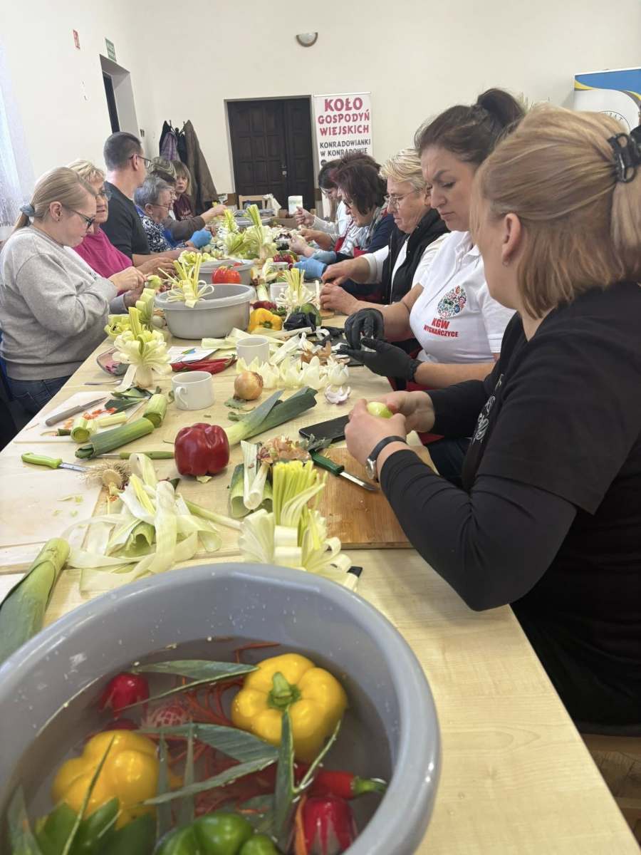 Warsztaty przebiegały w serdecznej atmosferze, a uczestnicy mogli również liczyć na pyszne domowe wypieki oraz ciepły posiłek przygotowany przez Koło Gospodyń Wiejskich „Konradowianki”, które wsparło organizację wydarzenia.