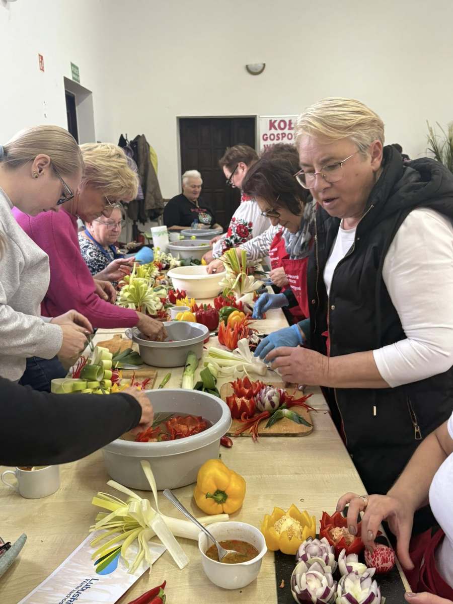 Ponad 40 Pań i Panów z Kół Gospodyń i Gospodarzy Wiejskich z terenu Powiatu Wschowskiego wzięło udział w wyjątkowych warsztatach z carvingu, czyli sztuki rzeźbienia w owocach i warzywach. Spotkanie odbyło się w Konradowie i było doskonałą okazją do zdobycia nowych, kreatywnych umiejętności, które z pewnością znajdą zastosowanie podczas lokalnych wydarzeń, festynów i spotkań integracyjnych.