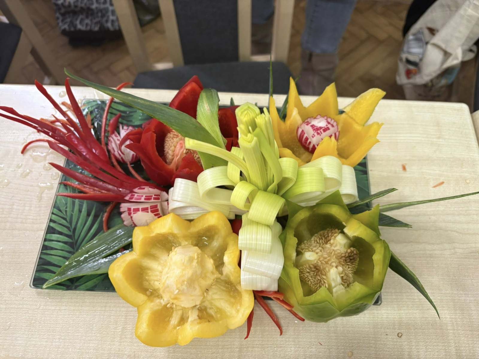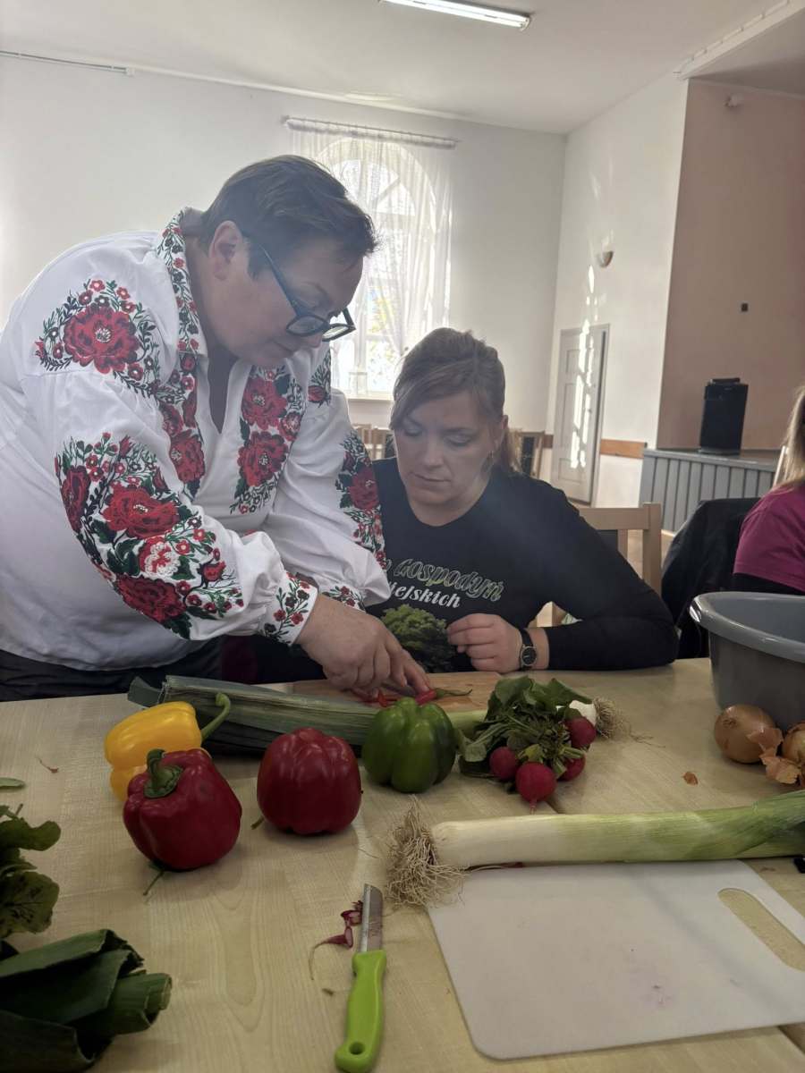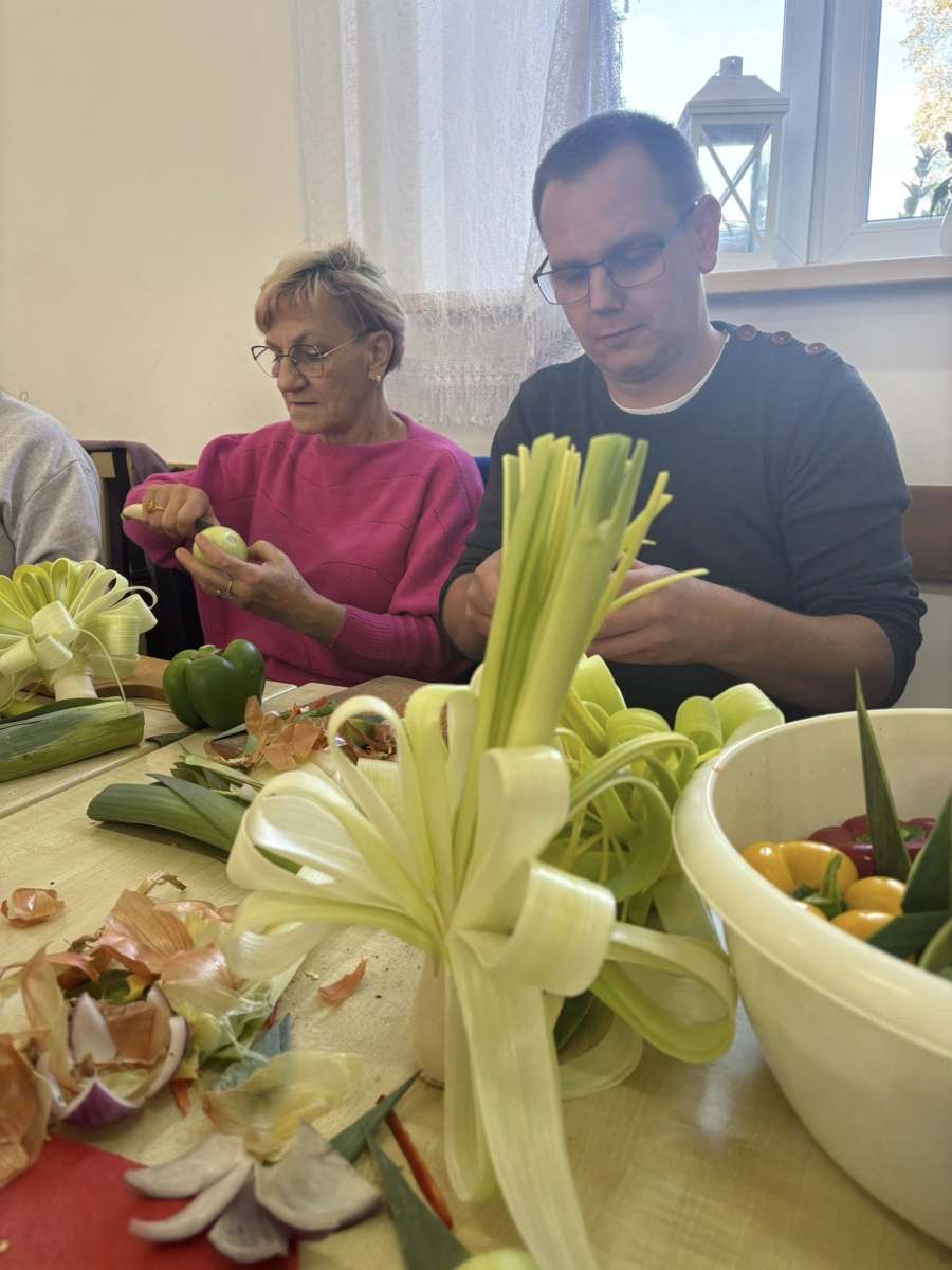 Pod okiem doświadczonej instruktorki pani Liliany, uczestnicy poznawali tajniki tworzenia efektownych dekoracji z marchwi, arbuzów, jabłek czy papryki. Zajęcia pozwoliły rozwinąć zdolności manualne, pobudziły wyobraźnię i udowodniły, że sztuka kulinarna może być nie tylko smaczna, ale i piękna.