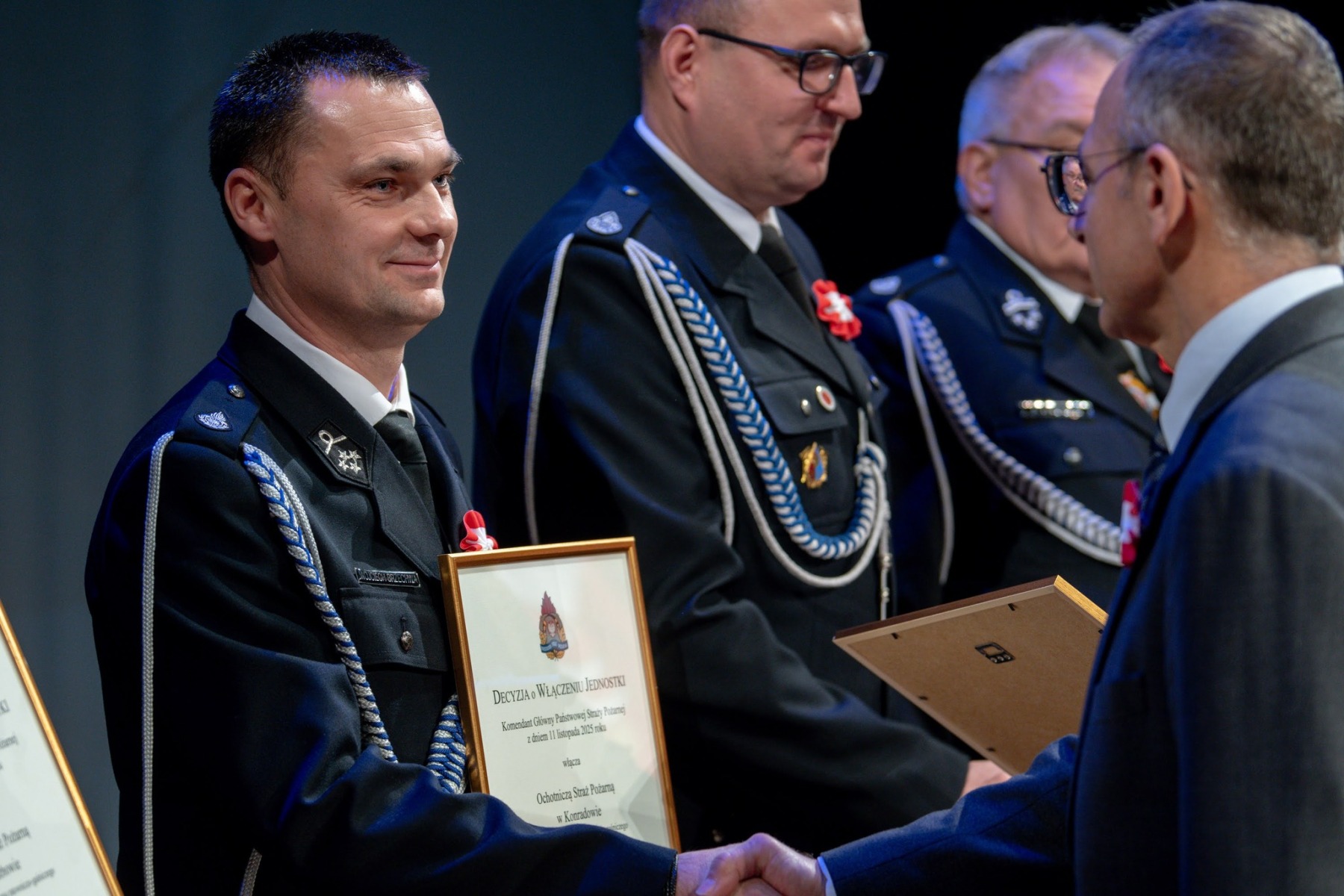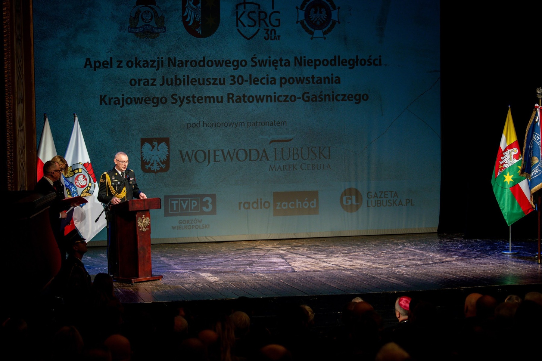 Podczas oficjalnej części uroczystości komendant wojewódzki podkreślił, że KSRG stanowi fundament bezpieczeństwa województwa lubuskiego, a jego siłą jest współpraca strażaków zawodowych i ochotniczych.