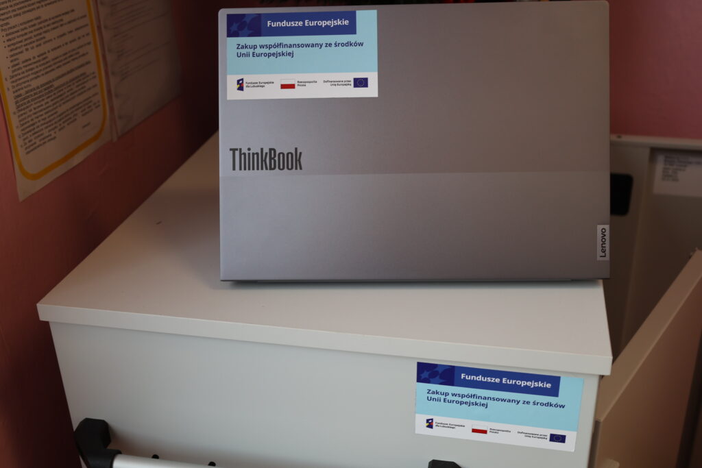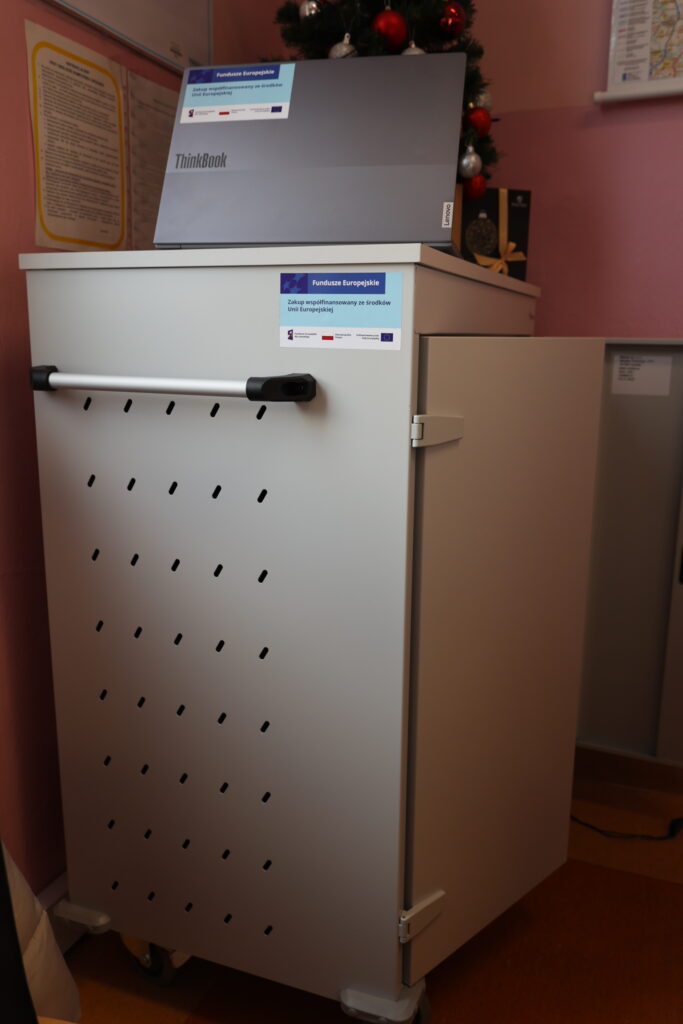 I Zespół Szkół we Wschowie pozyskał nowoczesny monitor interaktywny 86″, laptopy (16 szt.) oraz wózek na laptopy z przegródkami.