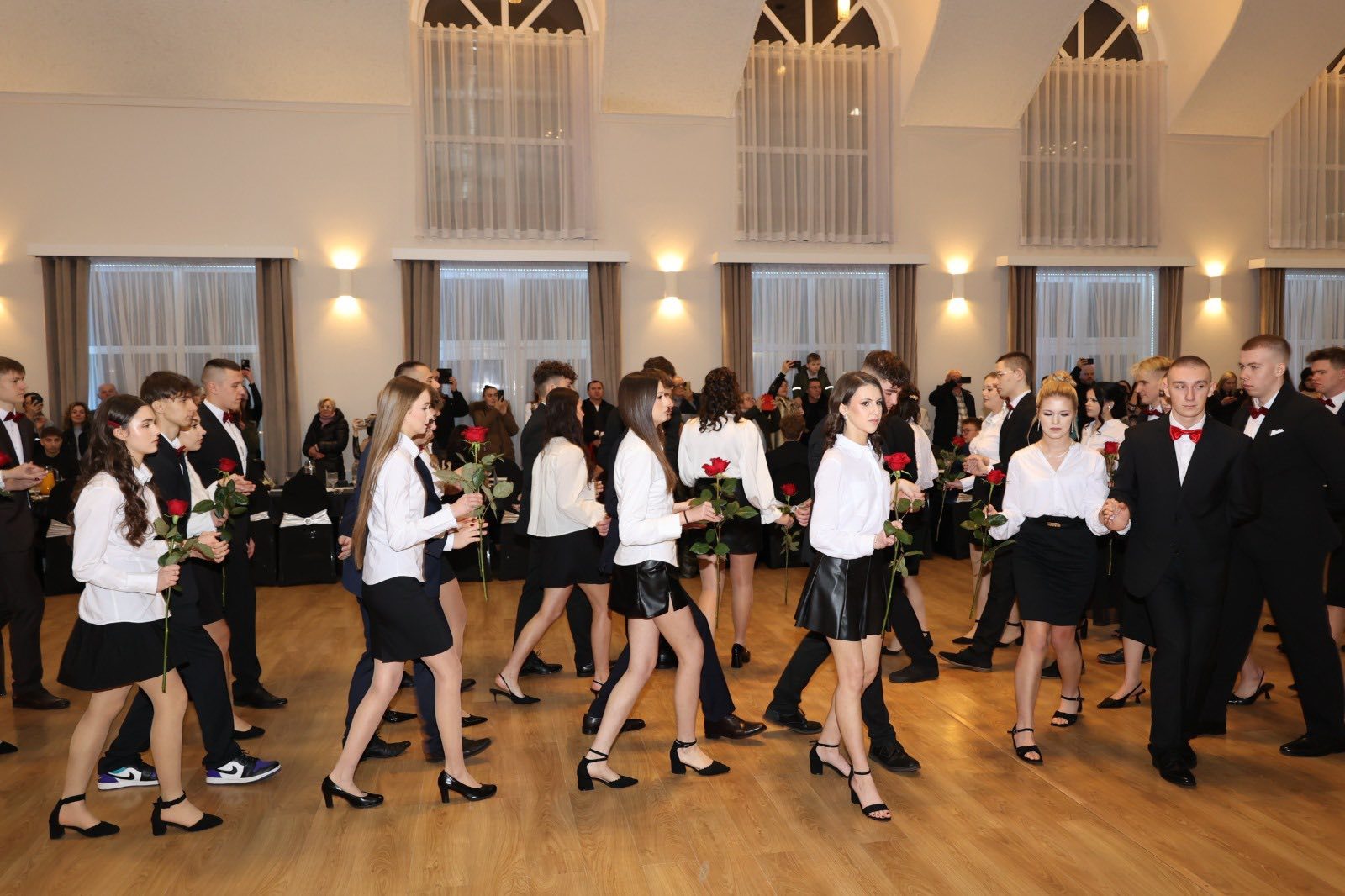 Na parkiecie bawiły się cztery klasy, które w tym roku przystąpią do egzaminu maturalnego. Łącznie w klasach maturalnych „Staszica” jest 80 uczniów. Nie zabrakło również podziękowań i kwiatów dla dyrekcji, wychowawców oraz nauczycieli.