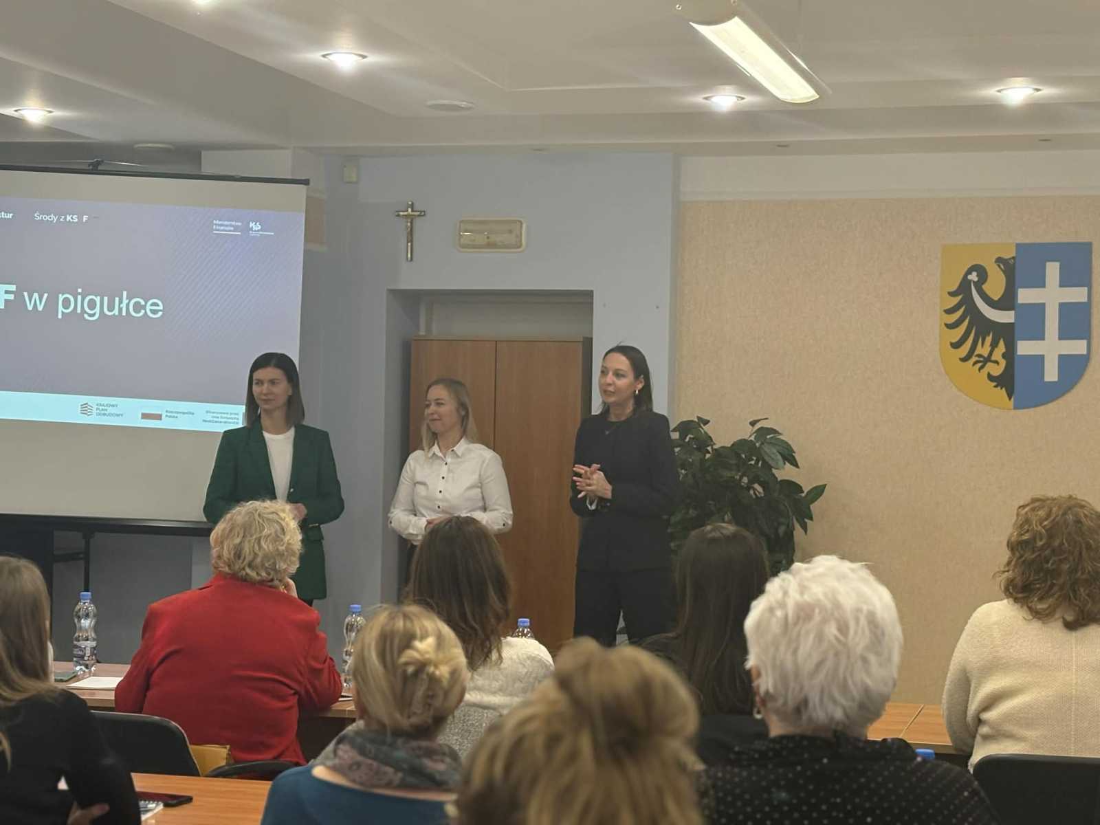 Szkolenie poprowadziła Pani Naczelnik Urzędu Skarbowego we Wschowie wraz z pracownikami urzędu, które w przystępny i praktyczny sposób przybliżyły uczestnikom najważniejsze zagadnienia związane z funkcjonowaniem KSeF. Omówiono zarówno podstawy systemu, jak i praktyczne aspekty jego stosowania w codziennej działalności organizacji.