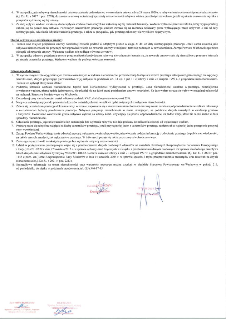 Szczegółowe informacje dotyczące nieruchomości oraz warunków przetargu można uzyskać w Starostwie Powiatowym we Wschowie (pokój 215) lub telefonicznie pod numerem 65 540 17 95.