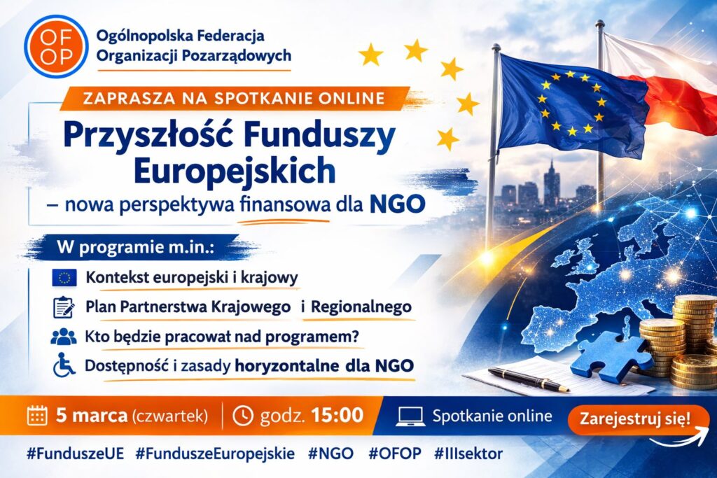 Ogólnopolska Federacja Organizacji Pozarządowych (OFOP)zaprasza NGO-sy na spotkanie dotyczące przyszłości Funduszy Europejskich.