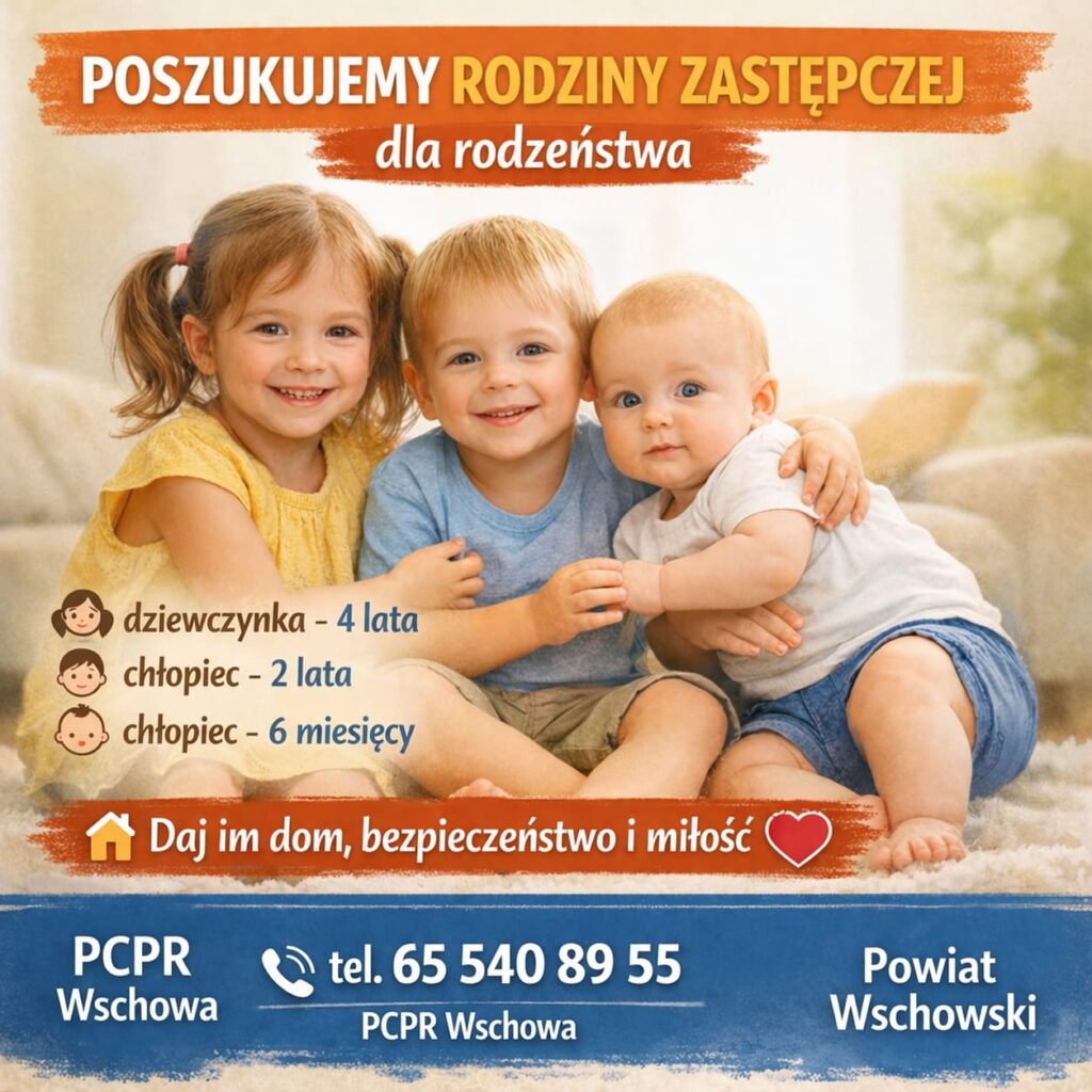 Powiatowe Centrum Pomocy Rodzinie we Wschowie zwraca się z pilnym apelem o pomoc w znalezieniu rodziny zastępczej dla trójki rodzeństwa.