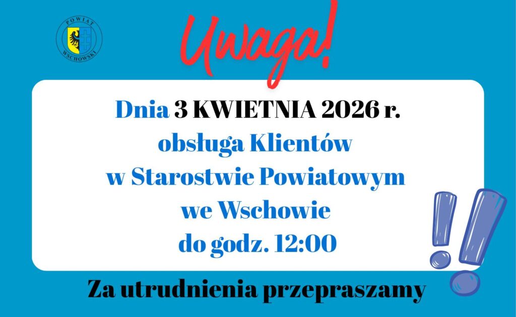 obsługa klientów w Starostwie Powiatowym we Wschowie będzie prowadzona do godziny 12:00.