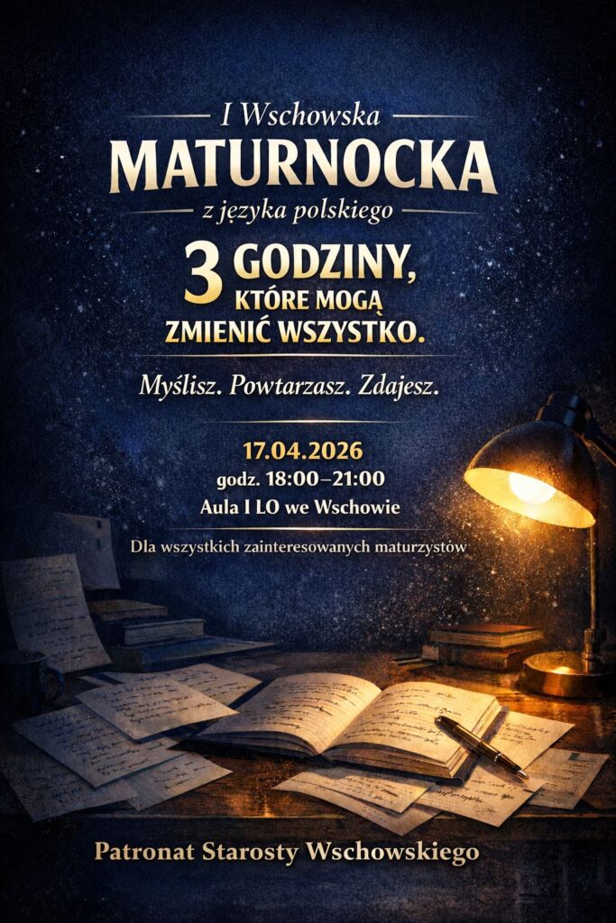 I Liceum Ogólnokształcące z Oddziałami Dwujęzycznymi im. Tomasza Zana we Wschowie zaprasza wszystkich maturzystów ze Wschowy i okolic na wyjątkowe wydarzenie edukacyjne – I Wschowską Maturnockę z języka polskiego.