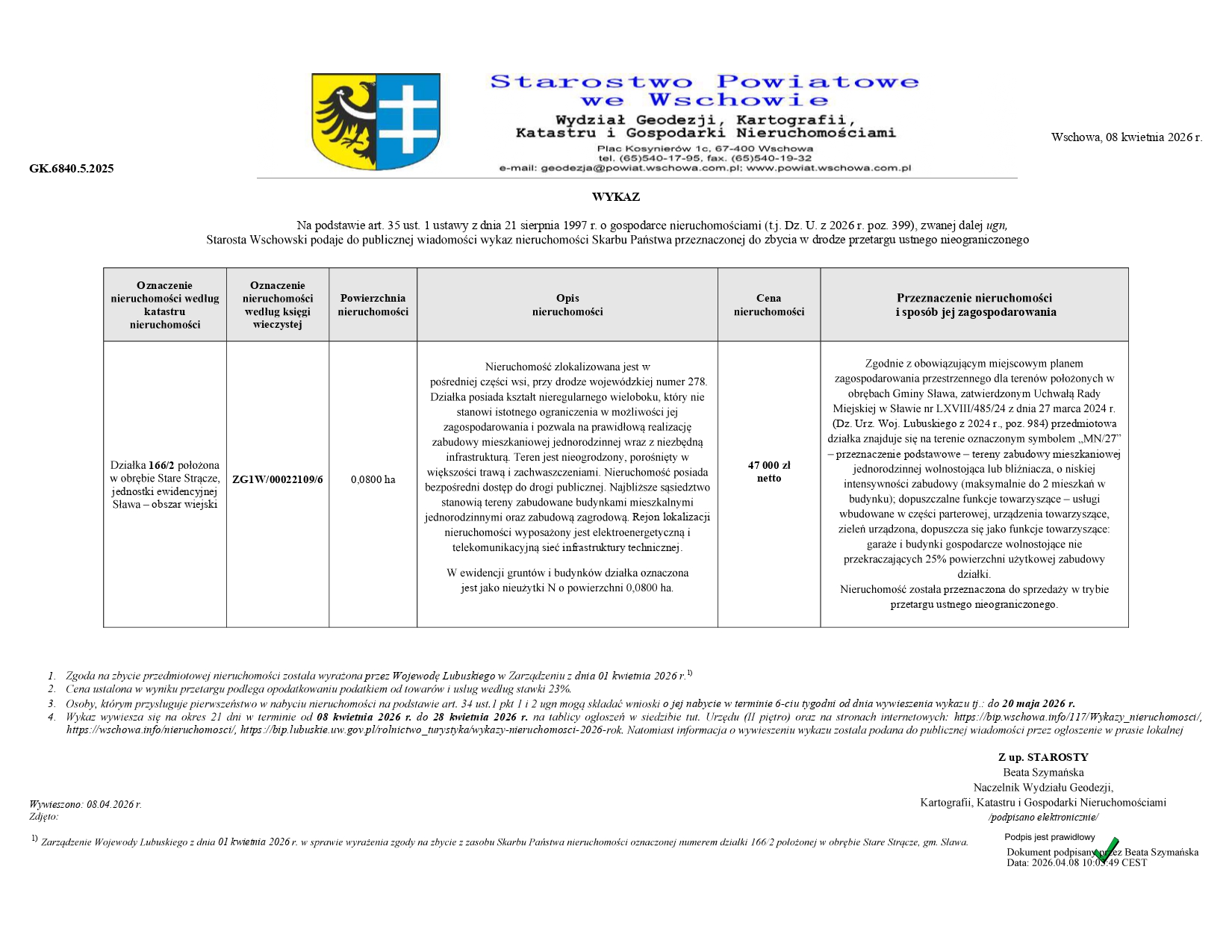 Administratorem danych wskazanych w zgodzie na przetwarzanie danych osobowych wyrażonej powyżej jest Starosta Wschowski z siedzibą Plac Kosynierów 1C, we Wschowie, 67-400 Wschowa, tel. 65/540 48 00, adres e-mail: powiat@wschowa.com.pl