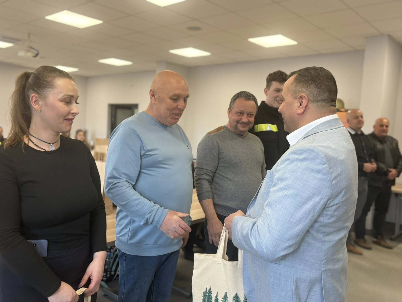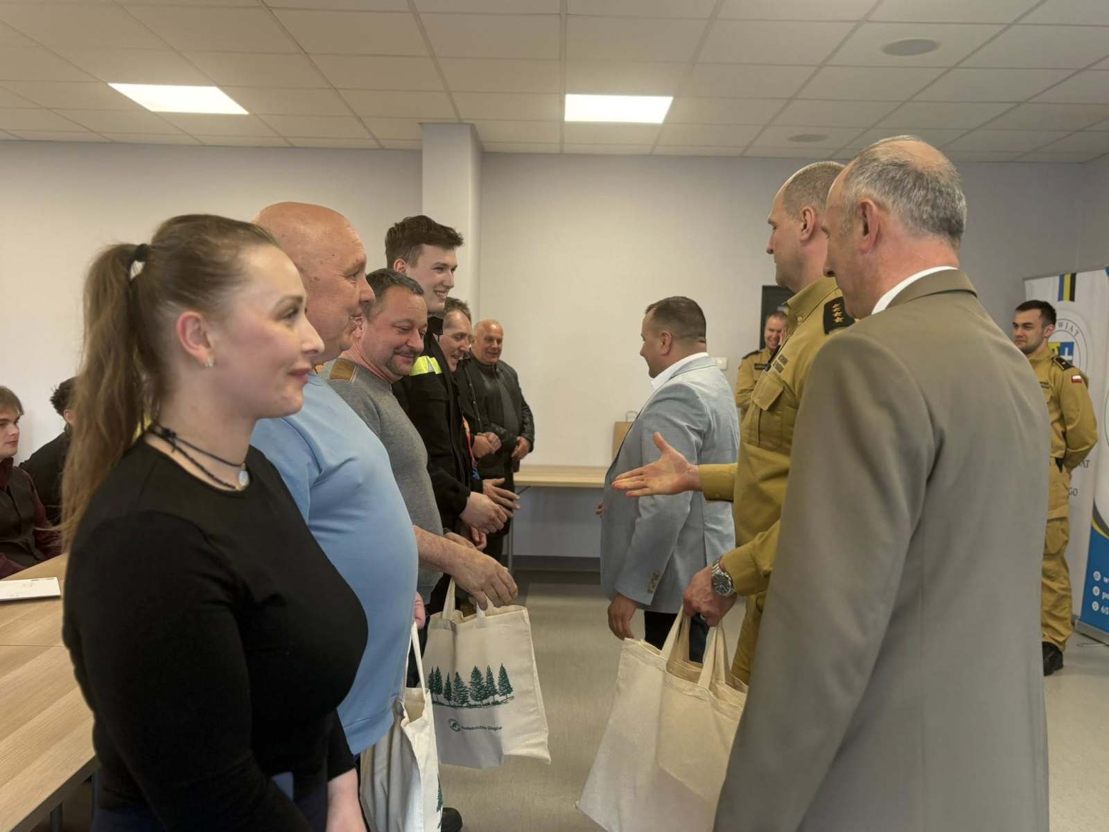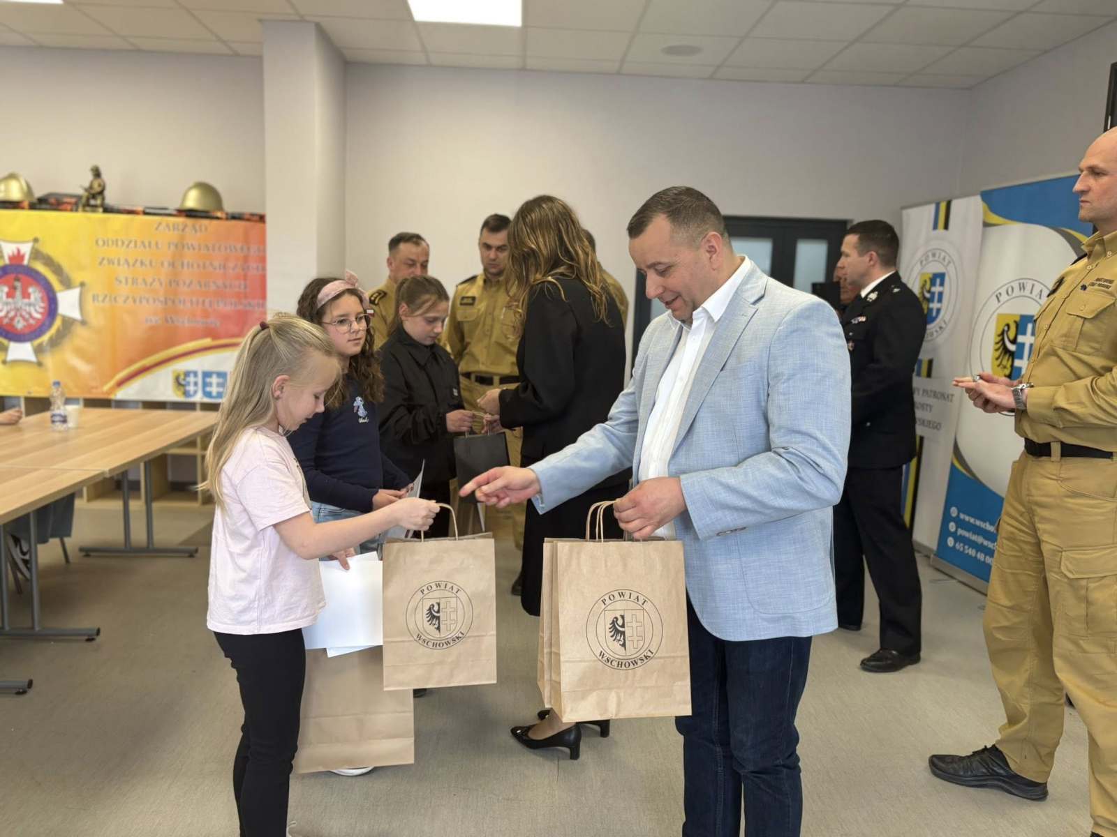 z dh Dominikiem Fedyczkowskim – Sekretarzem Zarządu Oddziału Powiatowego ZOSP RP we Wschowie oraz st.kpt. Piotrem Tyczyńskim – Komendantem Powiatowym PSP we Wschowie i st.bryg. Tomaszem Maciejewskim – Zastępcą Komendanta Powiatowego PSP we Wschowie.