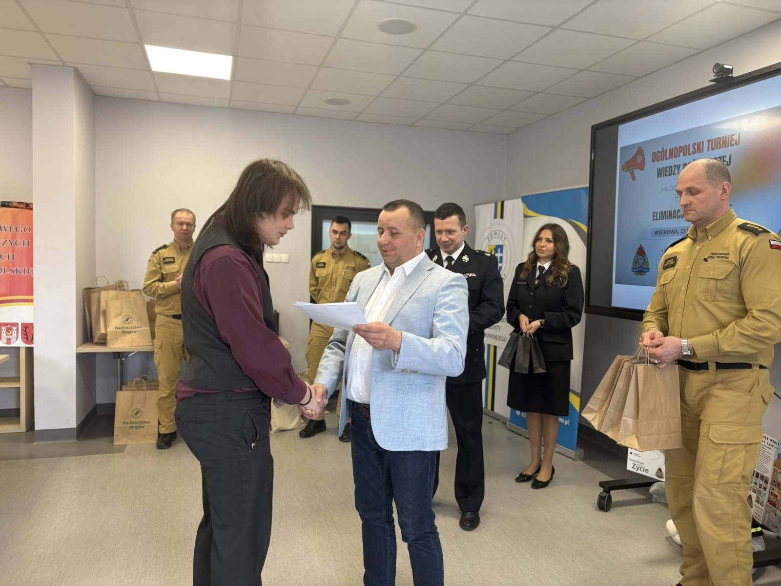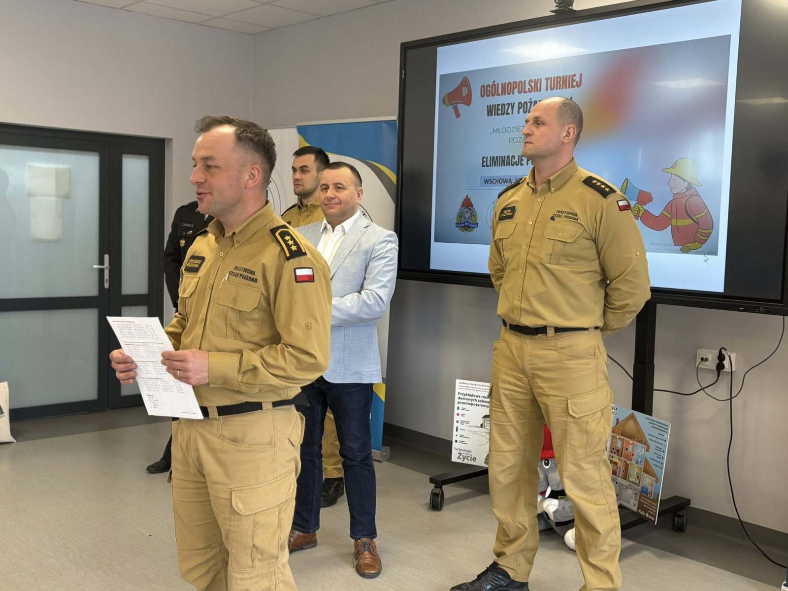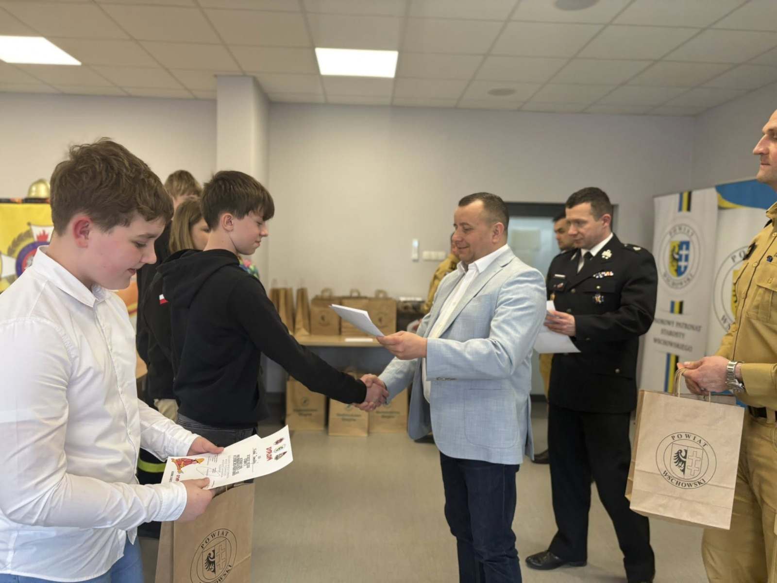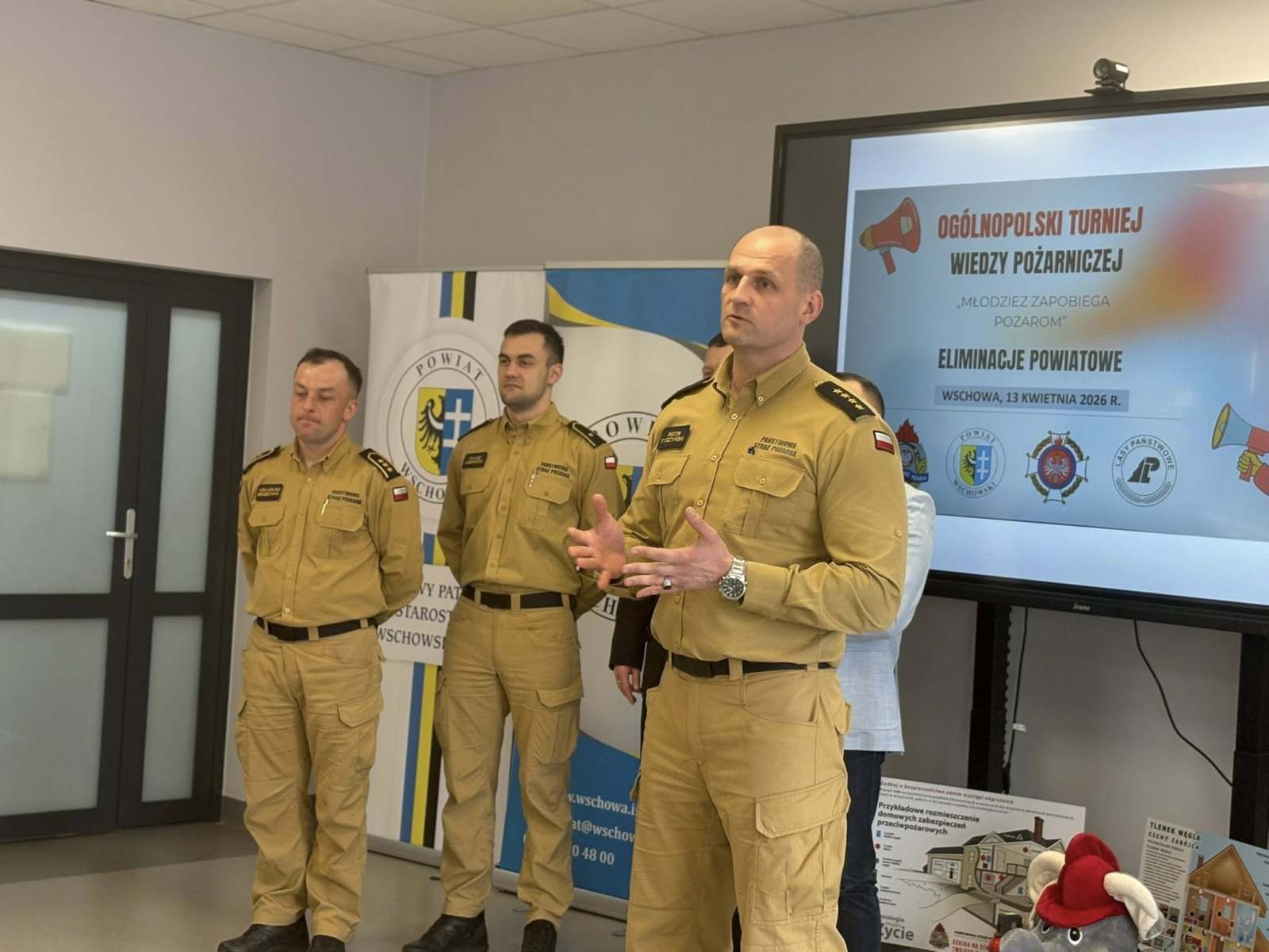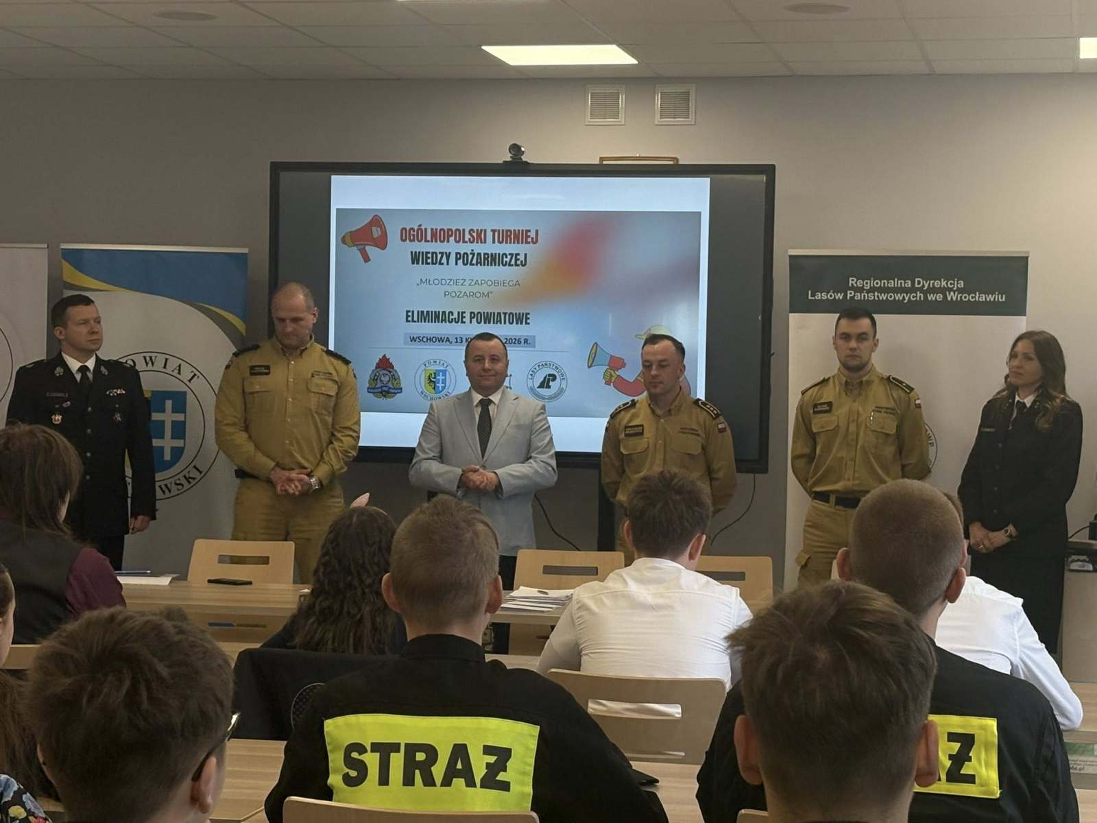 W dniu 13 kwietnia 2026 r. we Komendzie Powiatowej Państwowej Straży Pożarnej we Wschowie odbyły się eliminacje powiatowe Ogólnopolskiego Turnieju Wiedzy Pożarniczej „Młodzież zapobiega pożarom”, objęte honorowym patronatem Starosty Wschowskiego Waldemara Starosty.